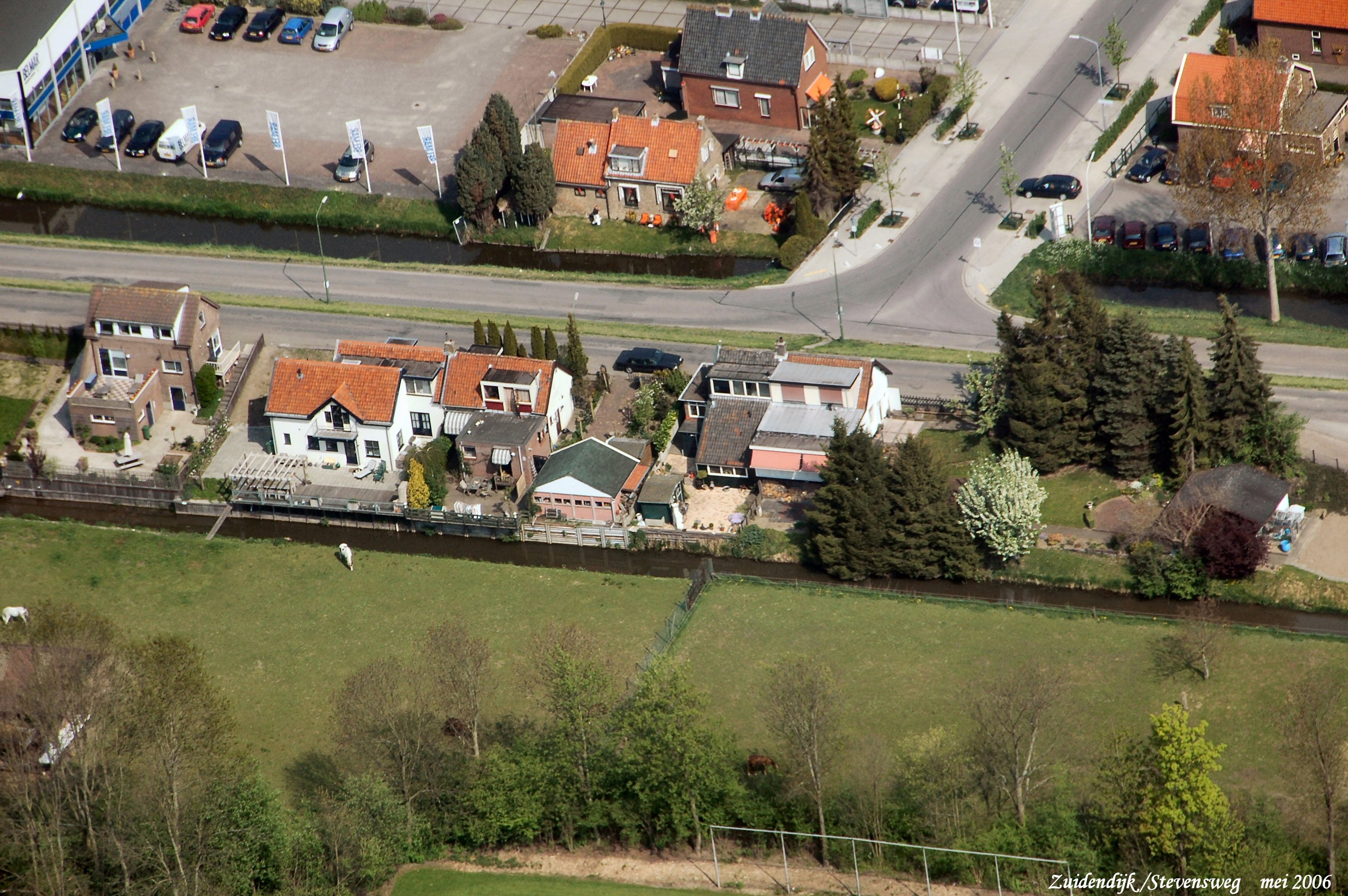 Zuidendijk met de Stevensweg rechts boven. links boven is keukencentrum Belmar gezien in Noordelijke richting.
