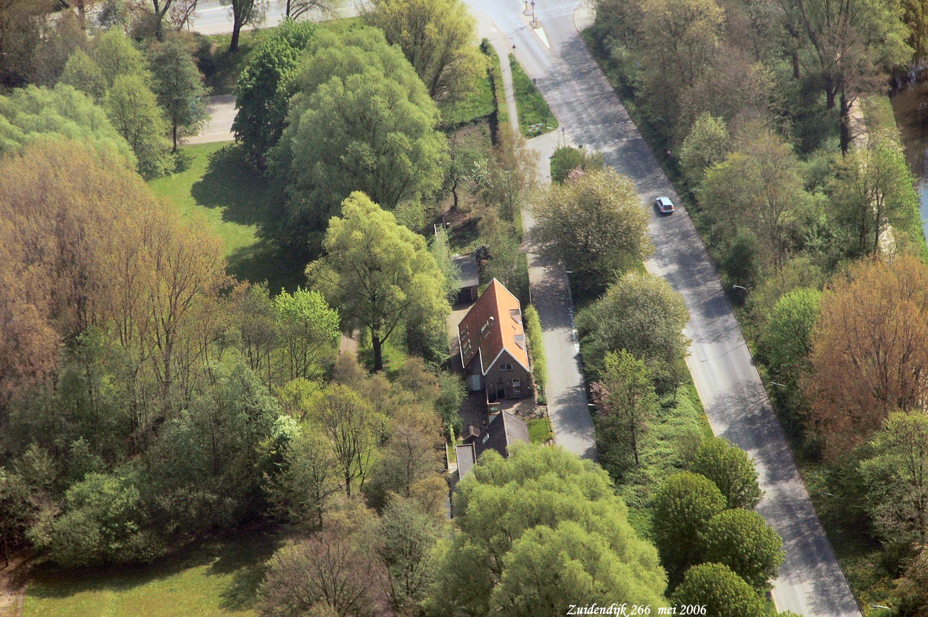 Boven is de Leeuwstraat. rechts onder is de Copernicusweg met de Zuidendijk links er van met de voormalige boerderij van Rook van Valen gezien in Oostelijke richting.