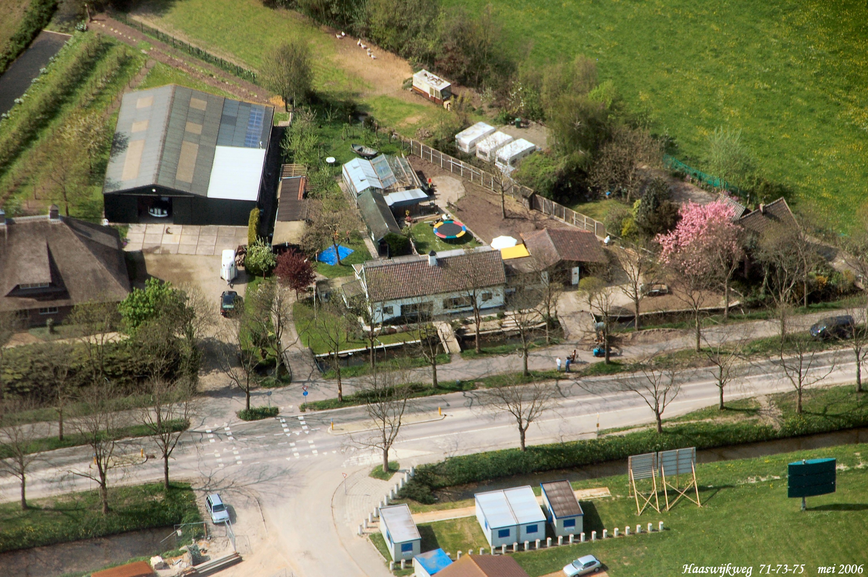 de Haaswijkweg 71-75 met de Provincialeweg er naast. Onder toegang naar Stichting De Hoop aan de Provincialeweg gezien in Zuidelijke richting.