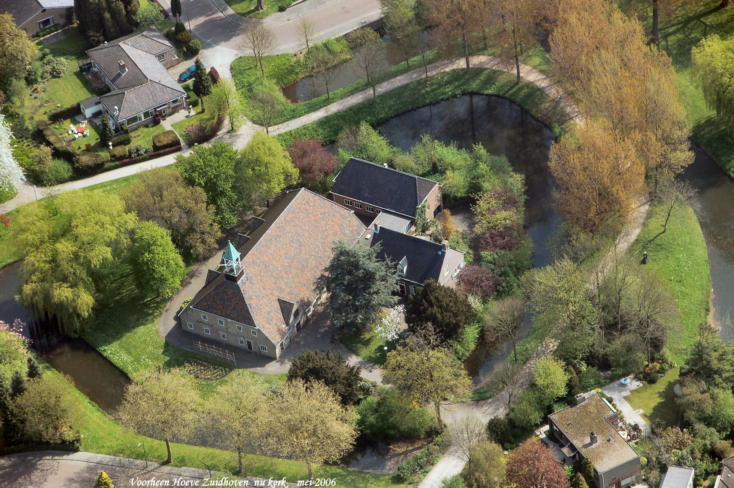 Voorheen boerderij Zuidhoven, nu in gebruik als Christelijk Gereformeerde Zuidhovenkerk. geien in Oostelijke richting.