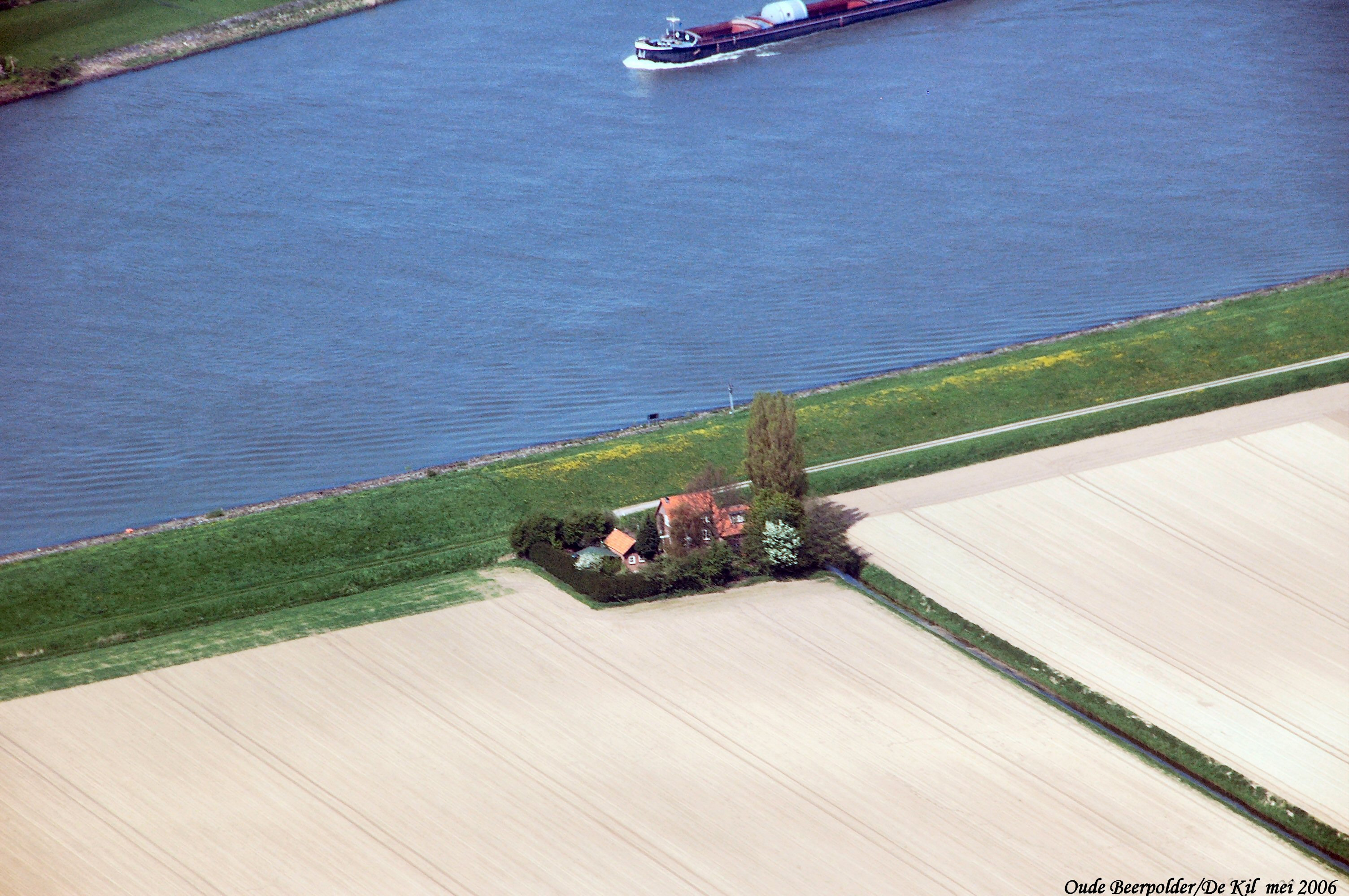 Oude Beerpolder hier nog met woning aan de Beerpoldersekade welke in 2014 is afgebroken voor de aanleg van industrie. Was voorheen een sluis met later een gemaal. Boven is de Kil gezien in Westelijke richting