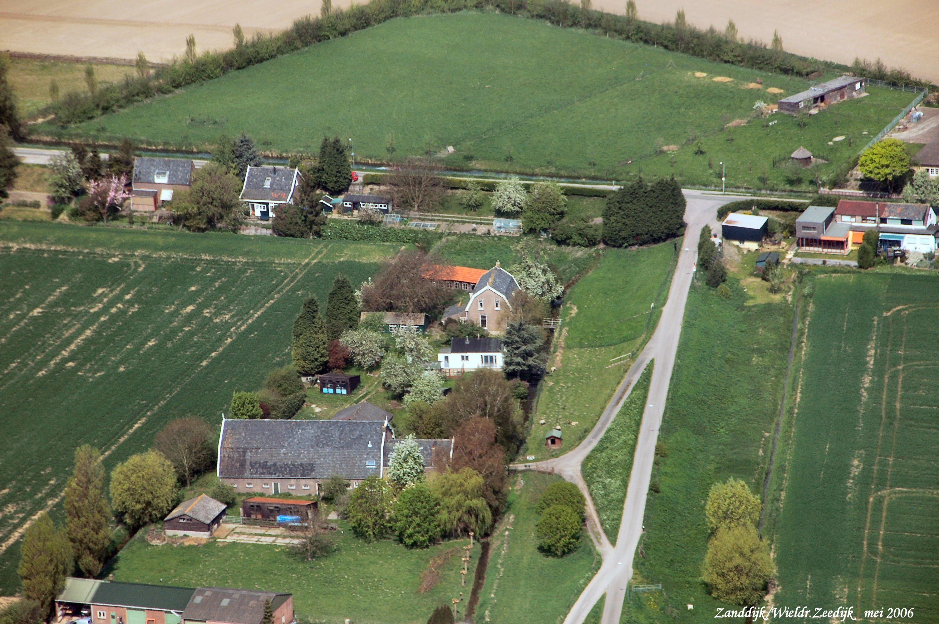 Boven is de Wieldrechtse Zeedijk met onder de Zanddijk naar de Prinsenheuvel gezien in Noordelijke richting.