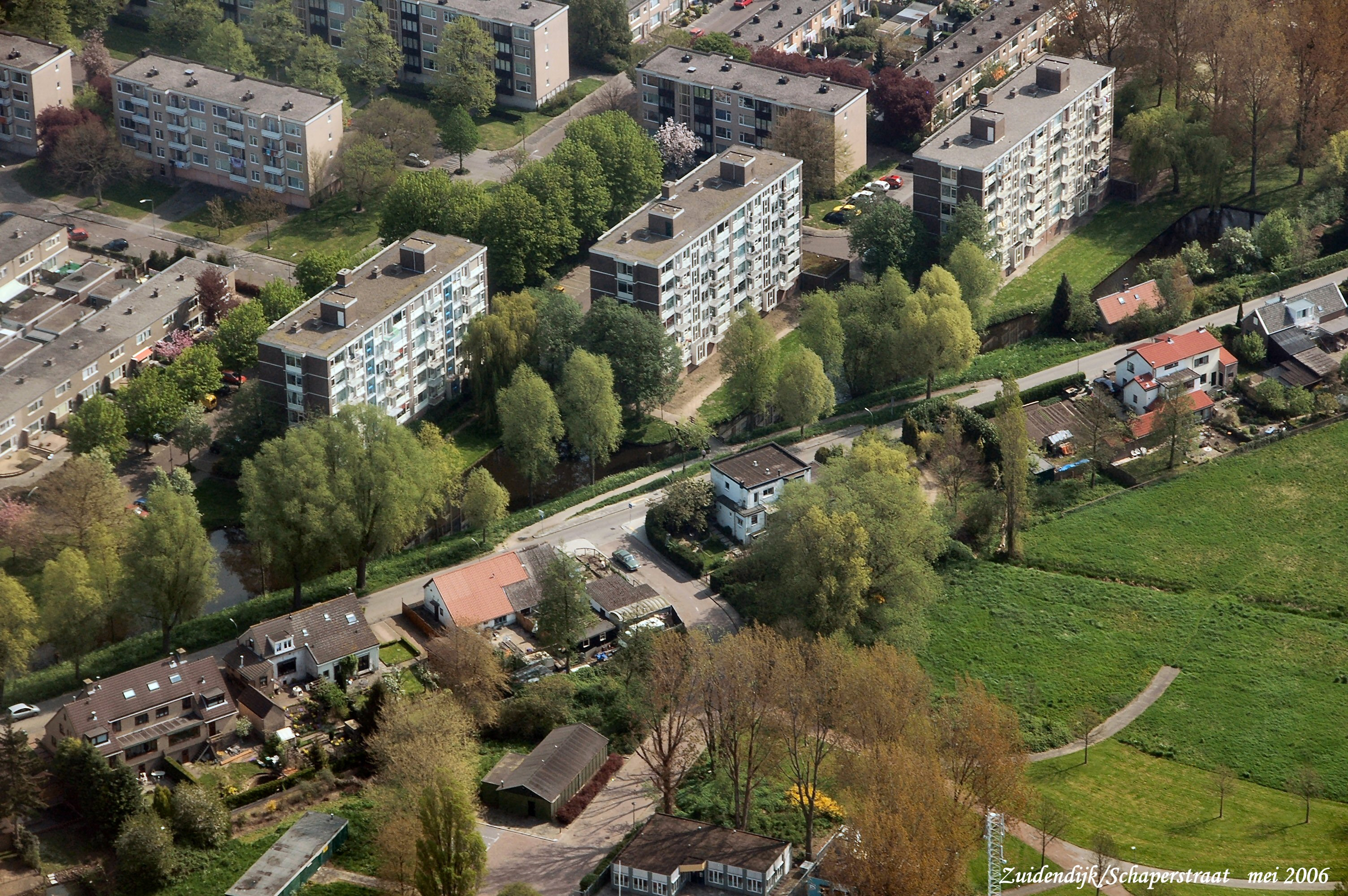 Zuidendijk met de Schaperstraat er boven in Crabbehoff gezien in Noord/Oostelijke richting.