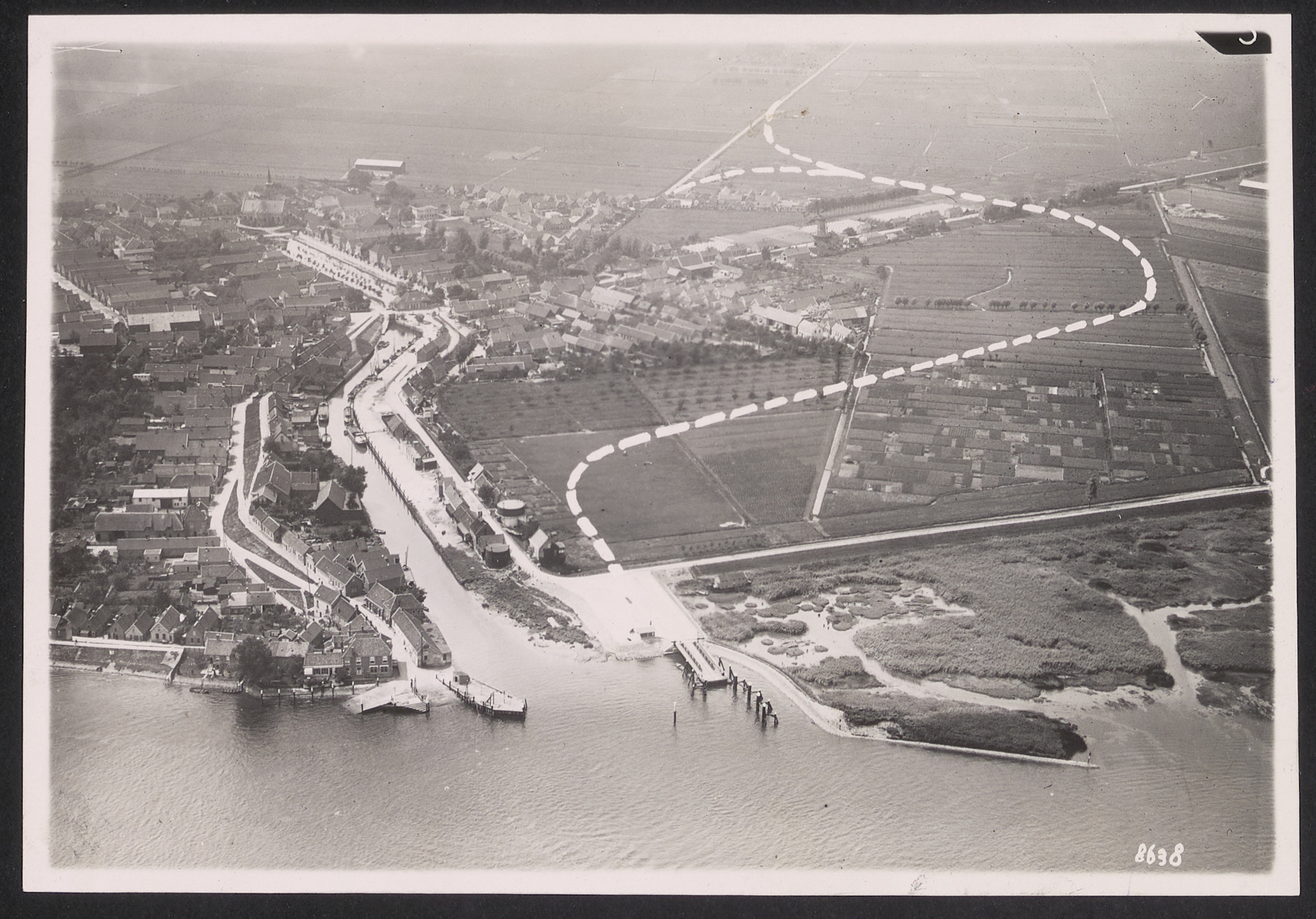 Op aviodrome.info wordt van deze luchtfoto van ‘s-Gravendeel, identificatienummer 008638ZR, als opnamedatum 10 juli 1929 gegeven. Aviodrome beheert het archief van vervaardiger KLM Aerocarto. De stippellijn als indicatie van de aan te leggen weg staat ook op die luchtfoto, dus klm aerocarto heeft zelf de opname bewerkt.