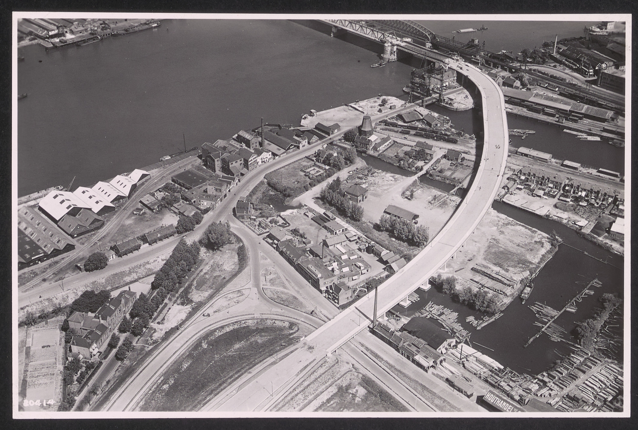 Op aviodrome.info wordt van deze luchtfoto, identificatienummer 020414ZR, als opnamedatum 6 juni 1939 gegeven. Aviodrome beheert het archief van vervaardiger KLM Aerocarto. A16, Rijksstraatweg, Weeskinderendijk, ‘s-Gravendeelsedijk, Papegat, Zwijndrechtse brug, molen de Pelikaan, houthandel Berger, Farina