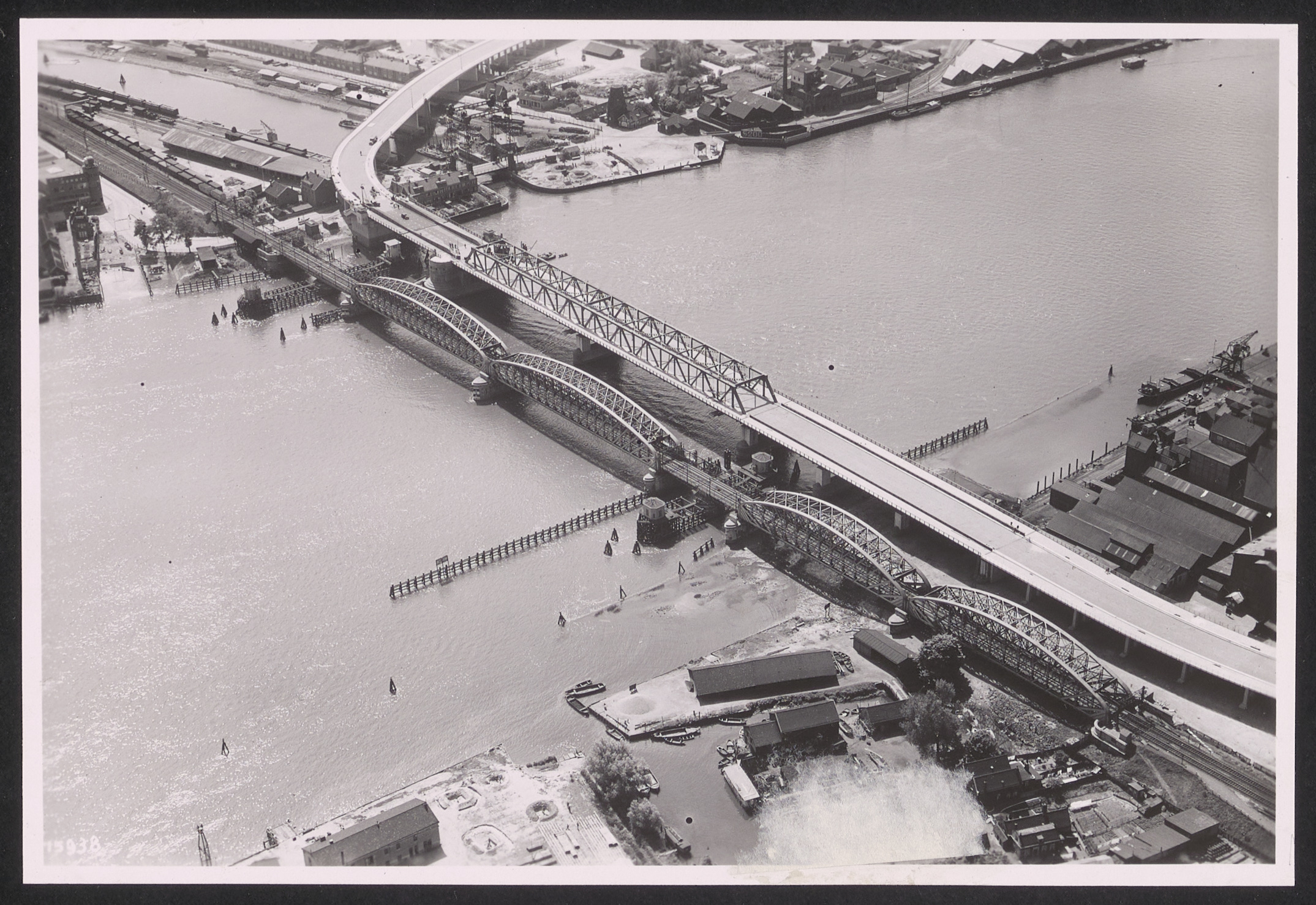 Aviodrome.info, identificatienummer 015938ZR, opnamedatum 6 juni 1939. Luchtfoto van de laatste fase van de bouw van de Zwijndrechtse Brug over de Oude Maas. Twee weken later op 24 juni 1939 is de verkeersbrug officieel geopend.