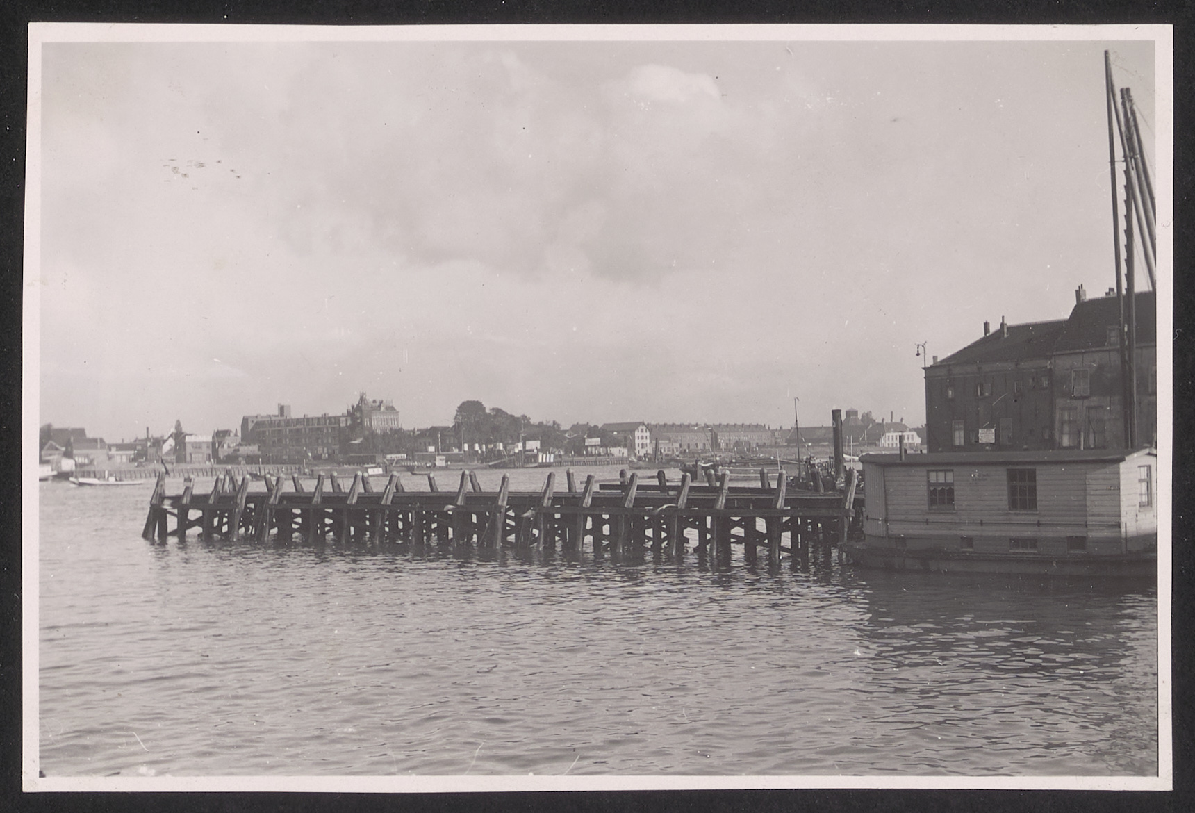 Zie 552_390813-039: Vernieuwing van den Bomsteiger 1935, oude houten steiger. Bomhaven.