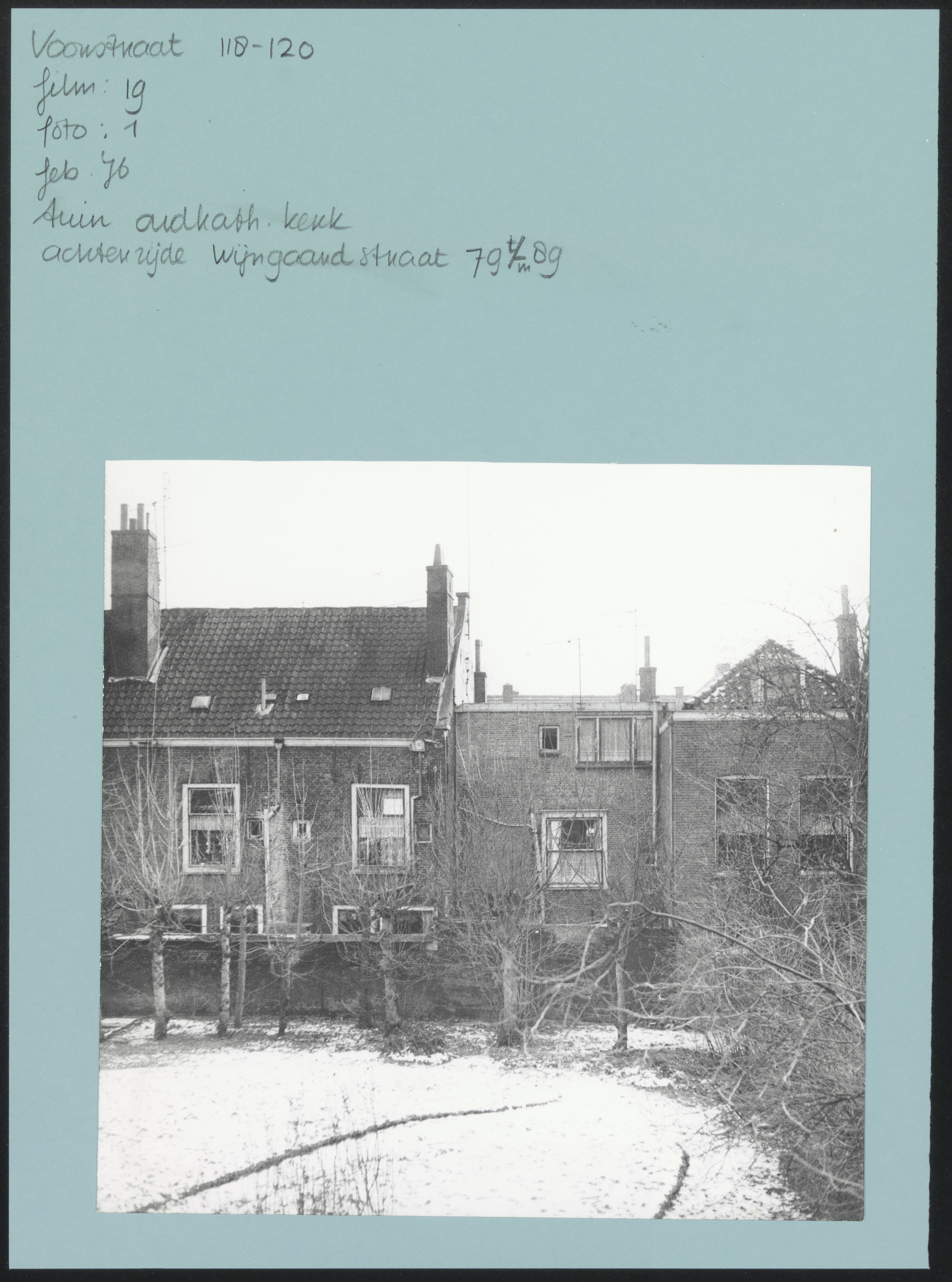Voorstraat 118, 120 / tuin oud katholieke kerk, achetzijde Wijngaardstraat 79, 81, 83, 85, 87, 89 (feb. 1976)