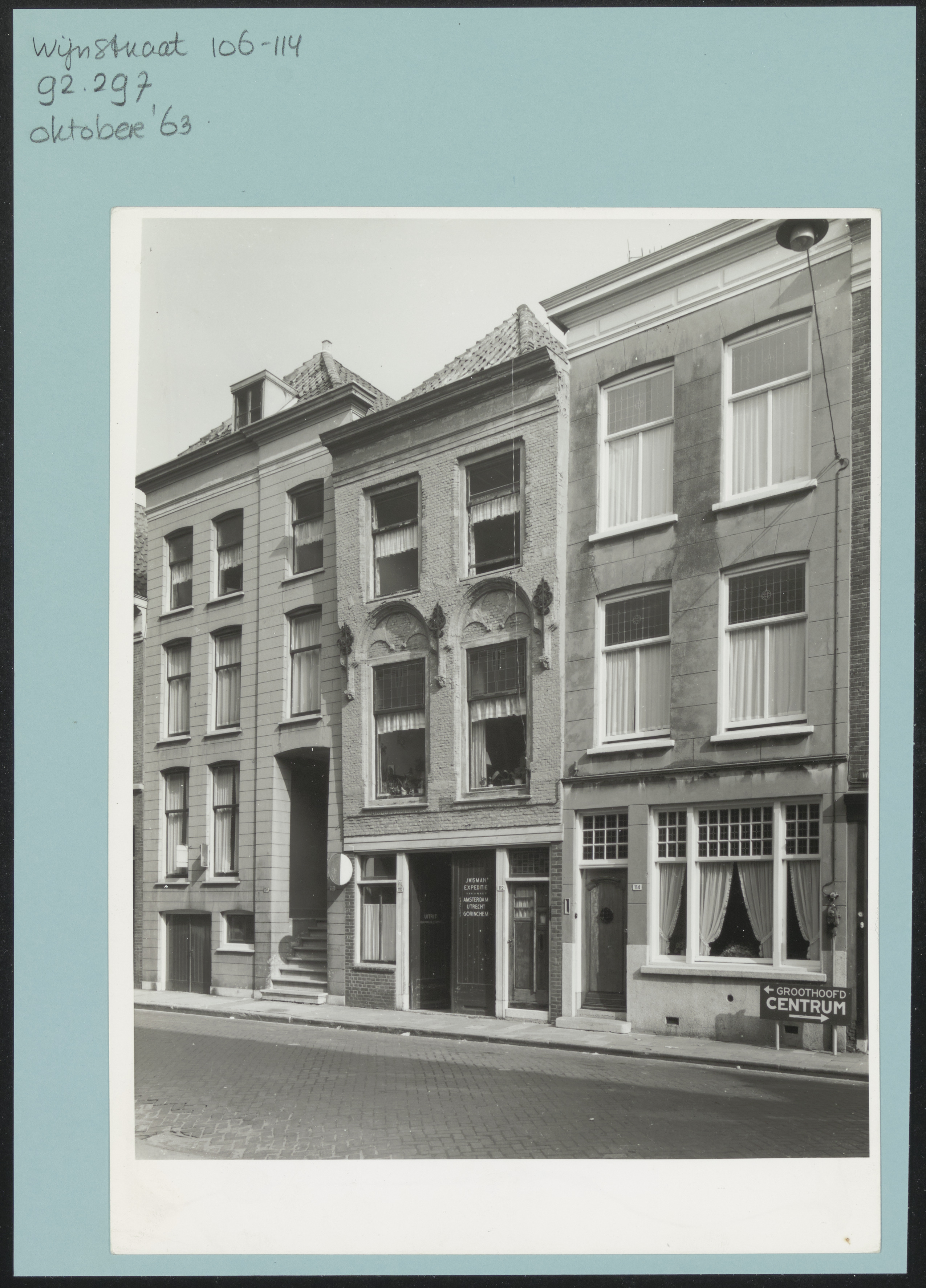 Wijnstraat 106, 108, 110, 112, 114 (wegwijzer: Groothoofd, centrum; J. Wisman's expeditie, Amsterdam-Utrecht-Gorinchem)