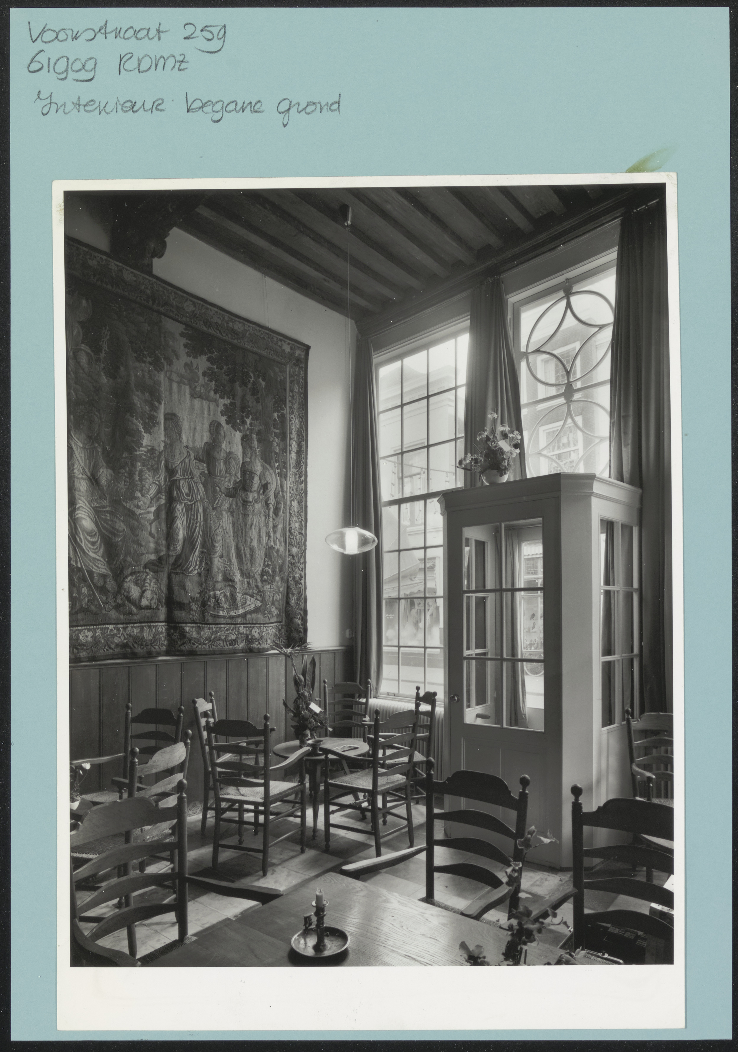 Voorstraat 259 (interieur begane grond)(wandtapijt, tafels en stoelen)