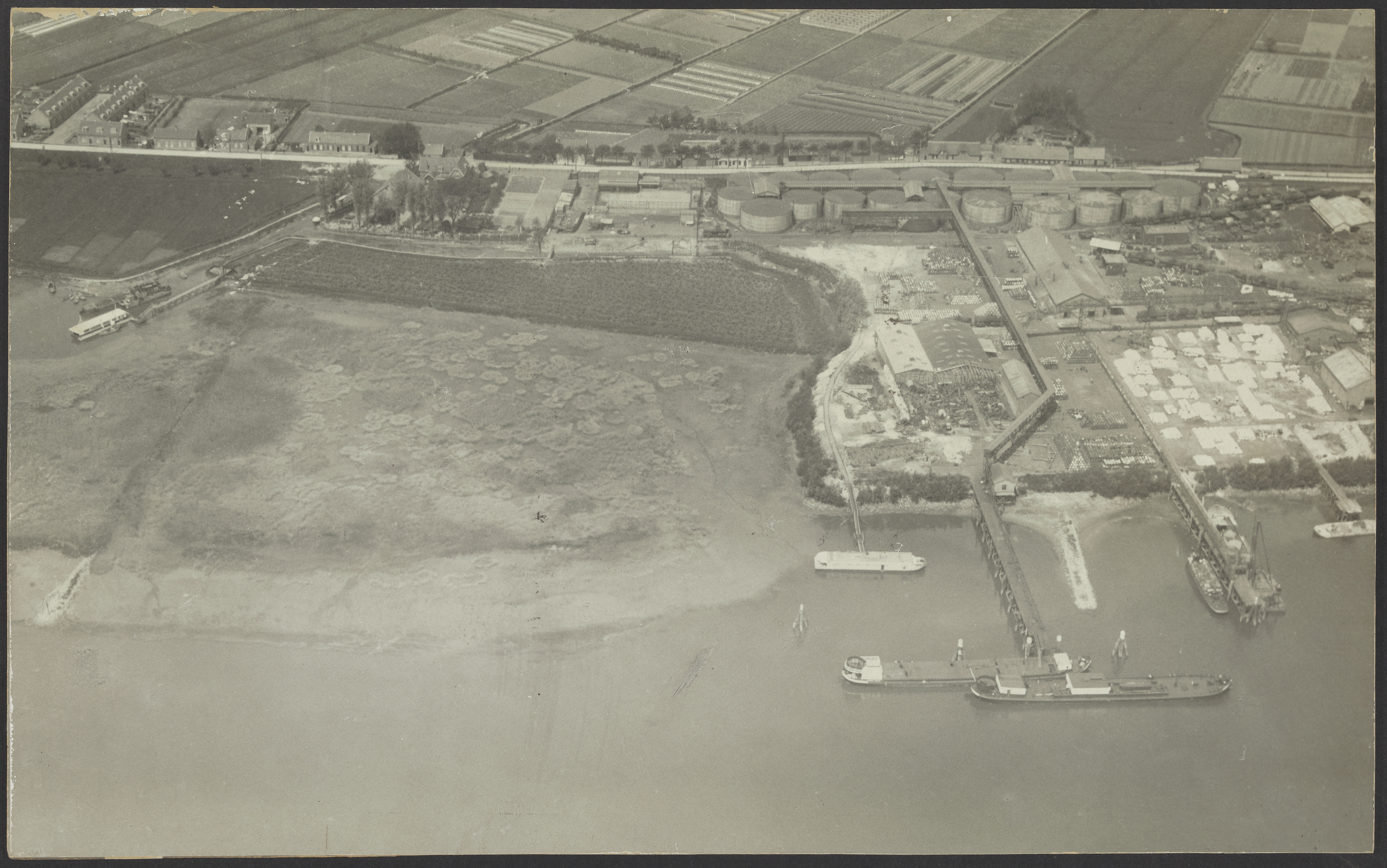 Luchtfoto lindtsedijk met rechts een stukje fabrieksterrein van Jurgens Oliefabrieken Zwijndrecht. Op aviodrome.info wordt van deze luchtfoto, identificatienummer 004197ZR, als opnamejaar 1926 gegeven. Aviodrome beheert het archief van vervaardiger KLM Aerocarto. Jurgens Oliefabrieken Zwijndrecht, opgericht 1913, ging in 1927 samen verder met buurbedrijf Van den Bergh's Zeepfabriek Zwijndrecht als VOZ (Maatschappij tot Exploitatie van de Vereenigde Oliefabrieken Zwijndrecht). De VOZ werd in 1970 omgedoopt tot Unimills.