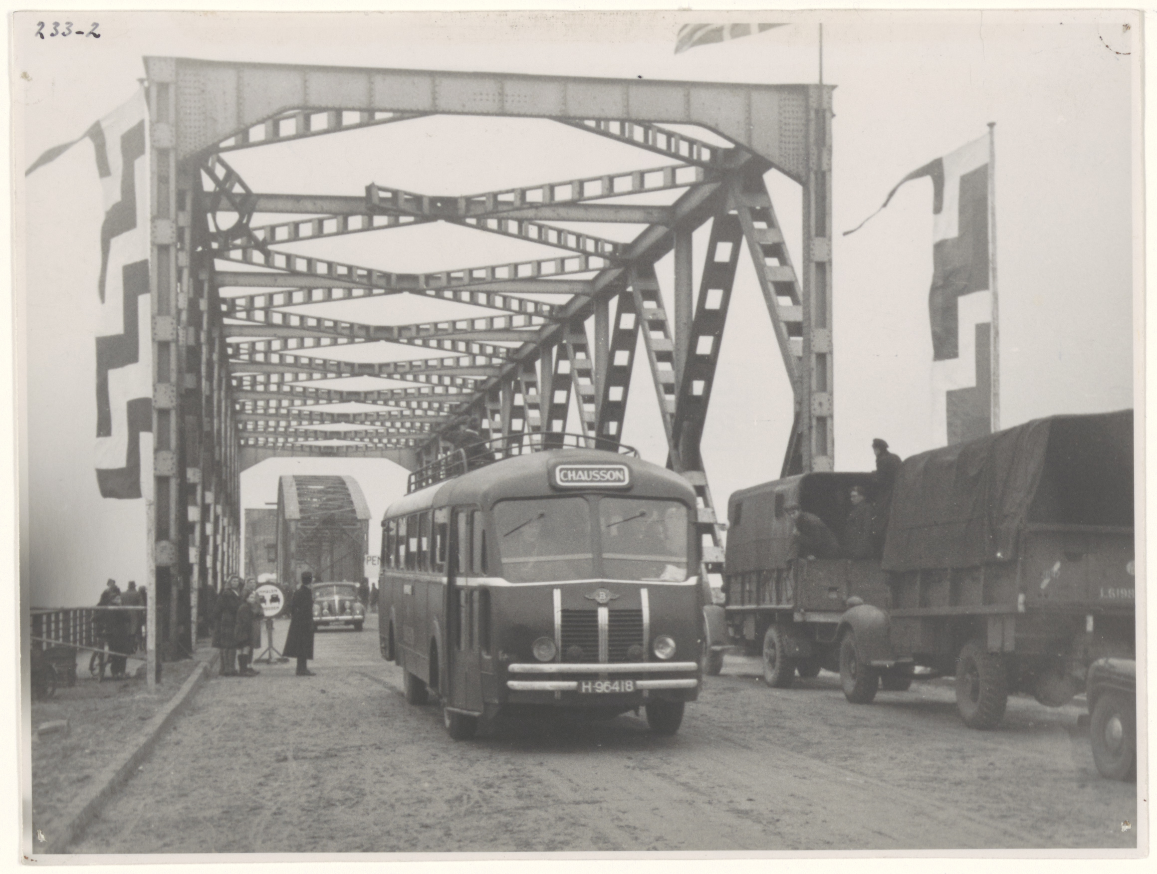 - autobussen militaire voertuigen spoorbruggen verkeersbruggen voetgangers