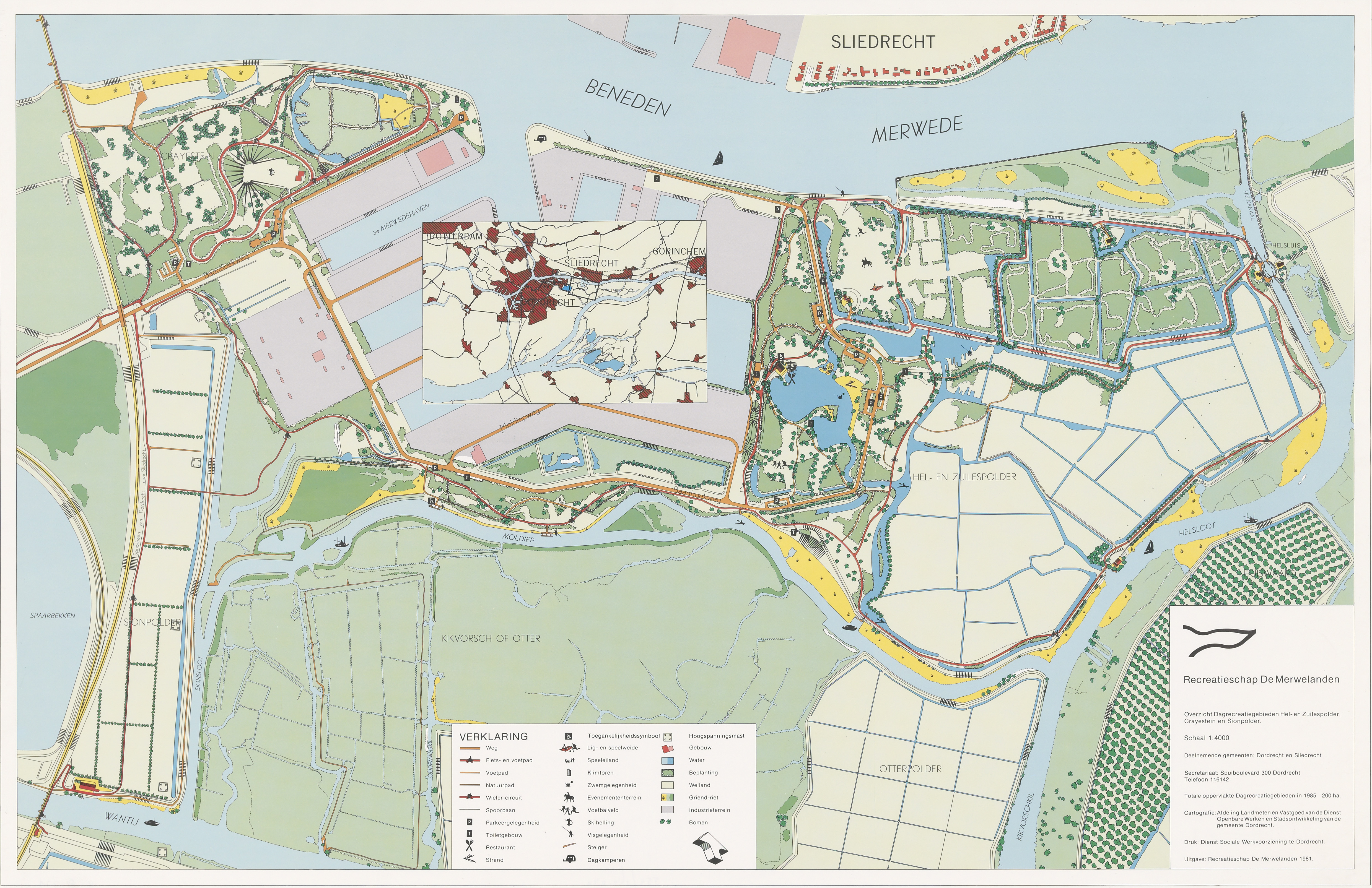 - Kaart van het recreatiegebied De Merwelanden, bestaande uit de Hel- en Zuilespolder, Crayestein- en Sionpolder.