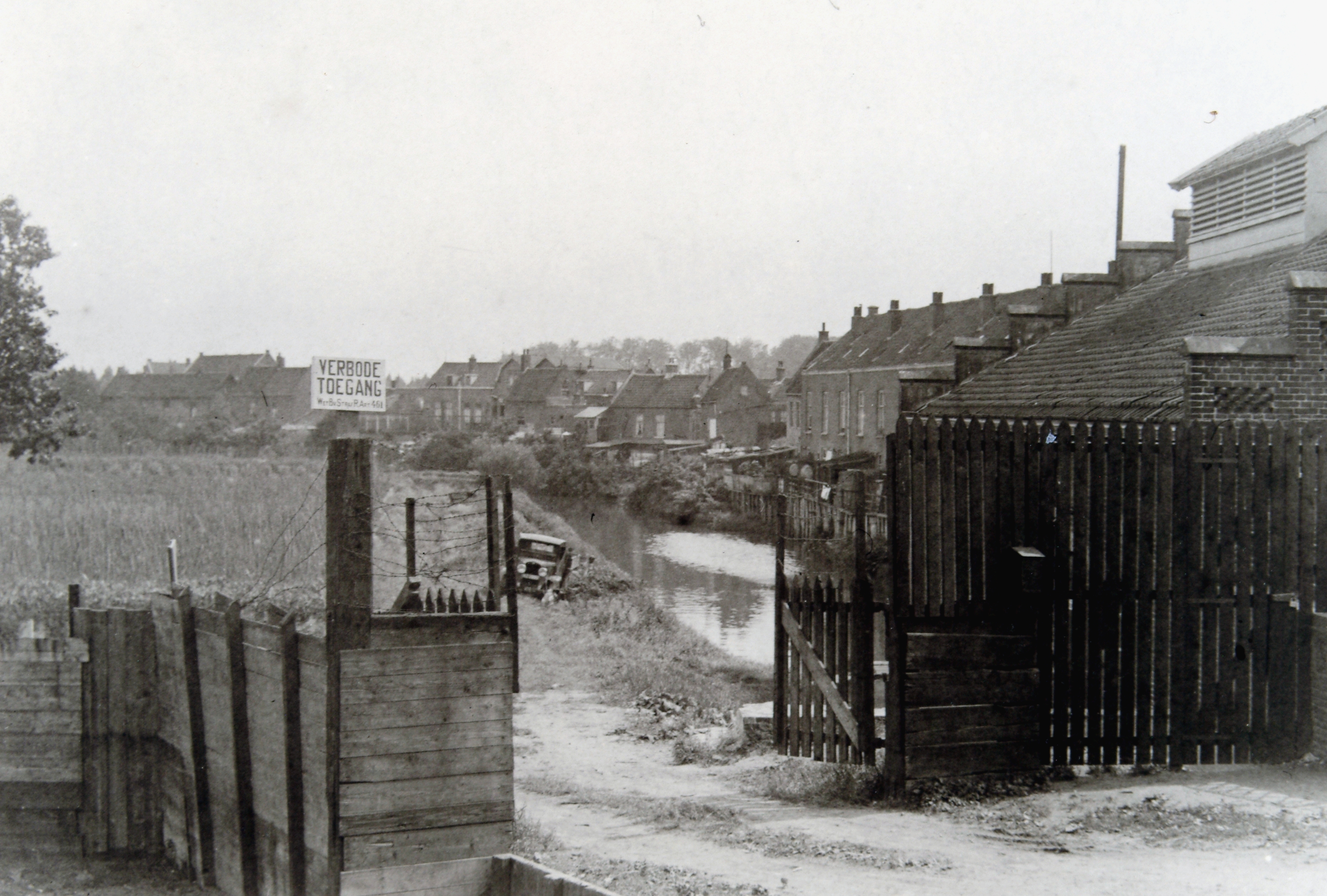 - Het poldergemaal (voorgrond rechts) in de Vuile Vliet nabij de 's-Gravendeelsedijk. De huizen staan in de Glazenstraat.