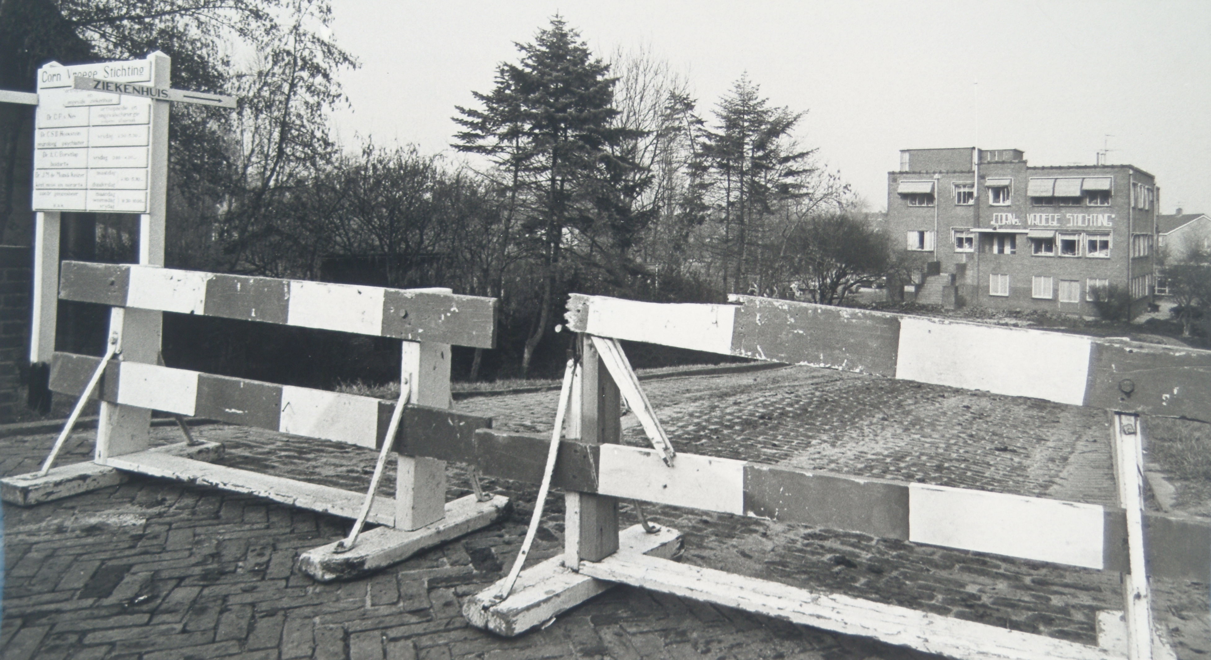 - Afsluitingsborden illustreren de sluiting van de Cornelis Vroege Stichting, een orthopedische kliniek en ongevallenziekenhuis, aan het Cortgene te Alblasserdam