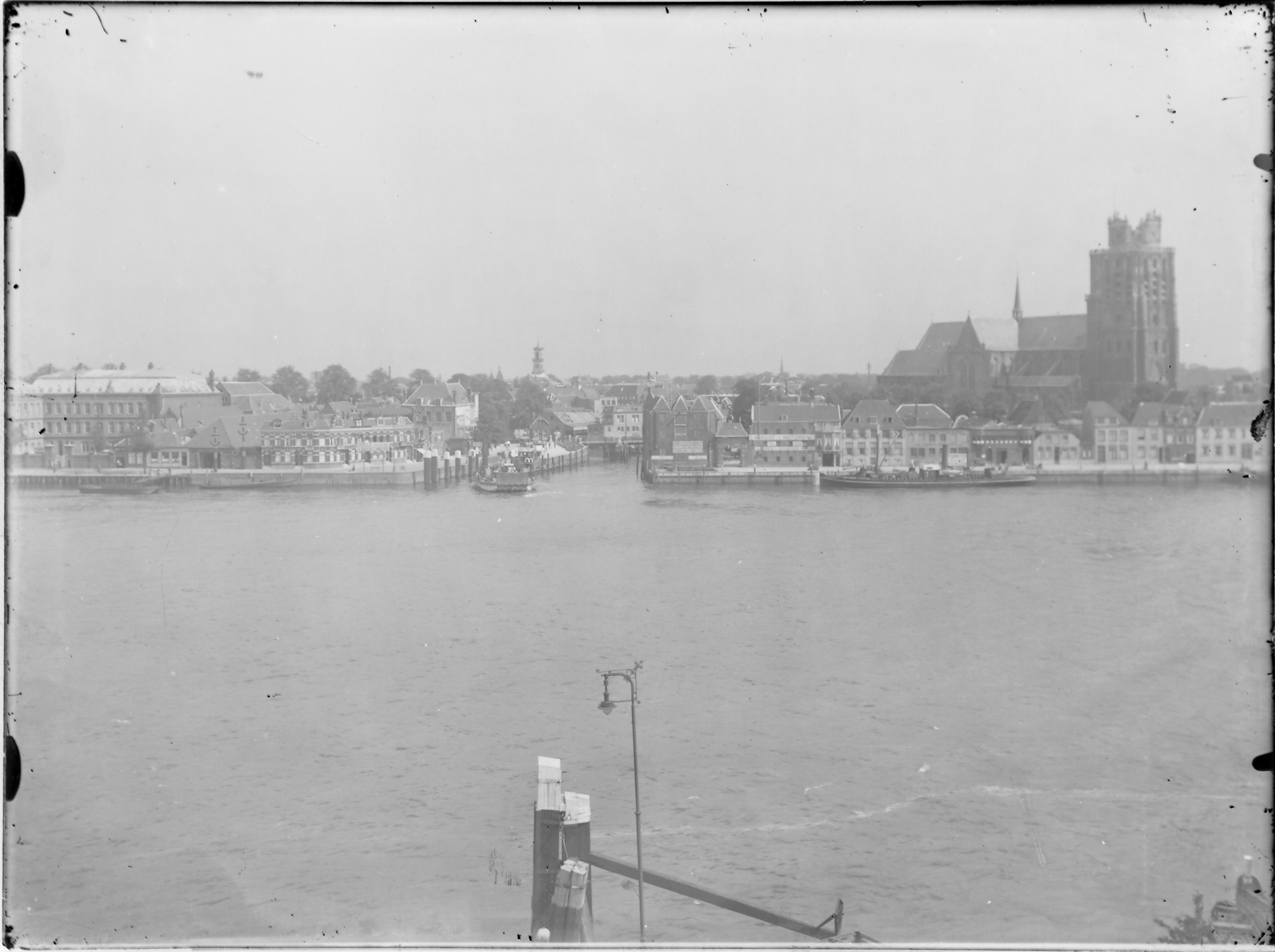 Gezicht op Dordrecht van de Veersteiger te Zwijndrecht