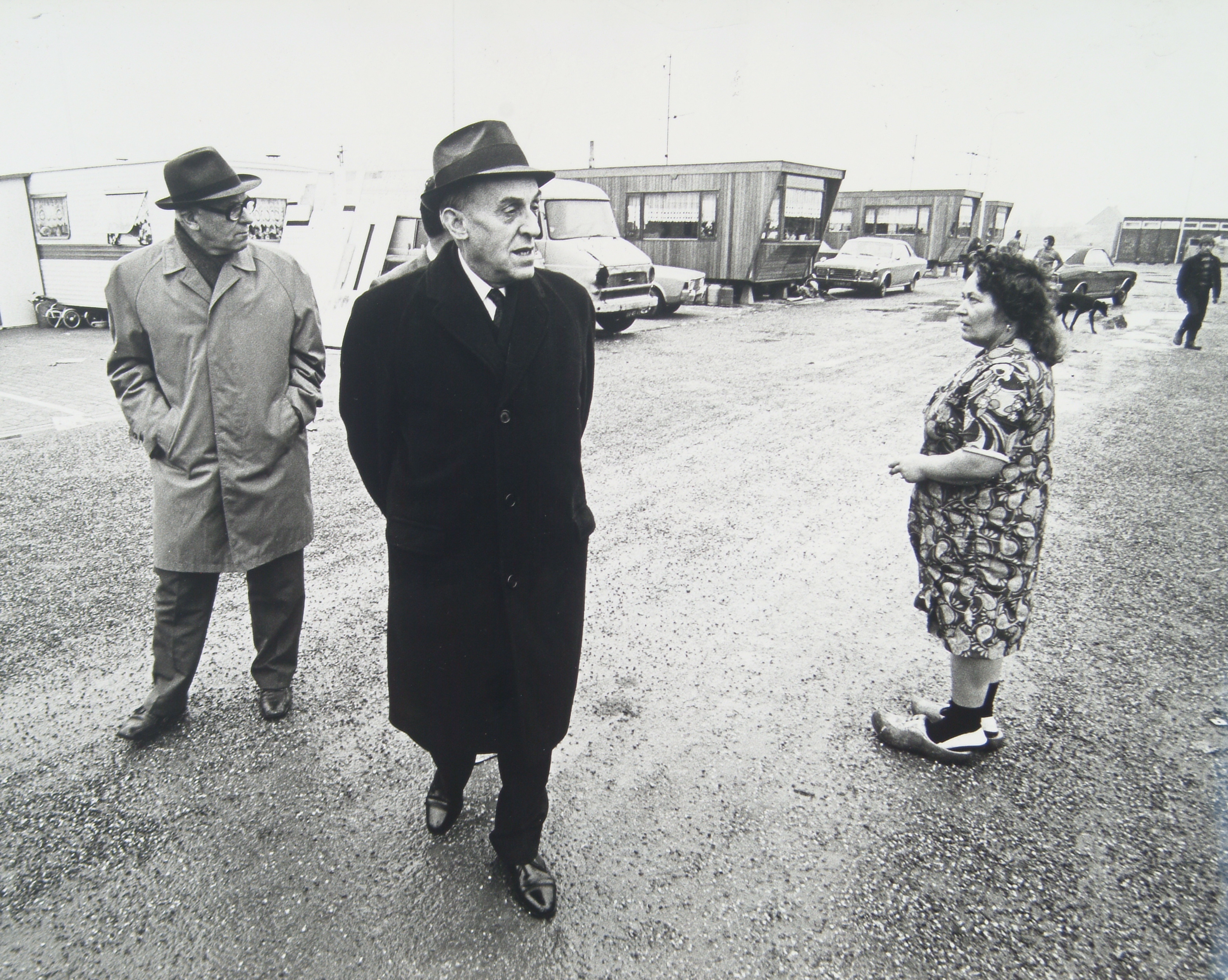 - Wethouder L. van Bohemen (openbare werken en sociale zaken) en directeur A. de Bruin (sociale dienst) bezoeken het nieuwe woonwagenkamp aan de Wieldrechtse Zeedijk