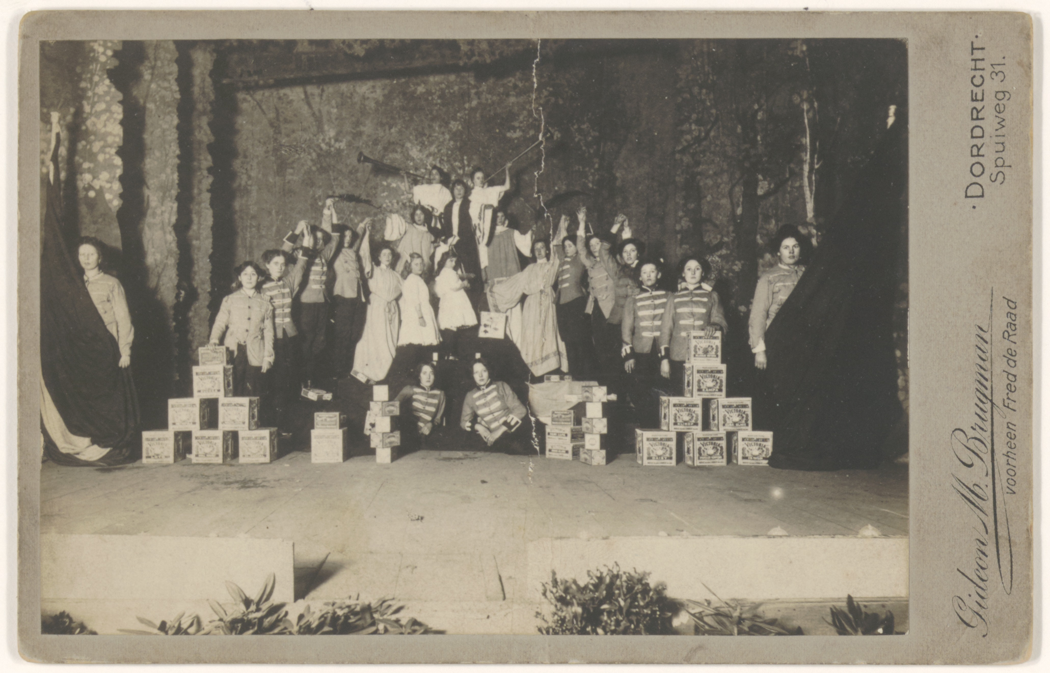 - Optreden van een groep meisjes van koek- en biscuitfabriek Victoria op een toneel.