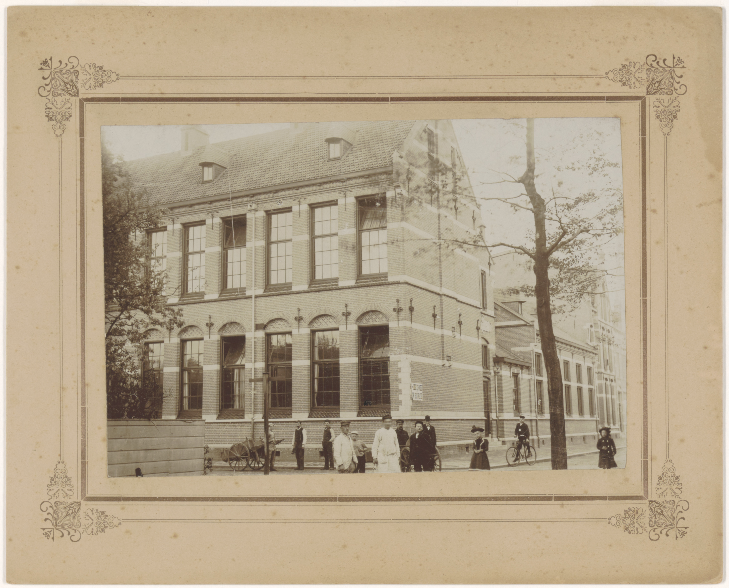 - Gemeenteschool nr. 9 voor lager onderwijs op de zuidelijke hoek Godfried Schalckensingel/Steltenstraat (links). Op de muur een aanplakbiljet met de tekst 'kookt uw melk en uw drinkwater'.