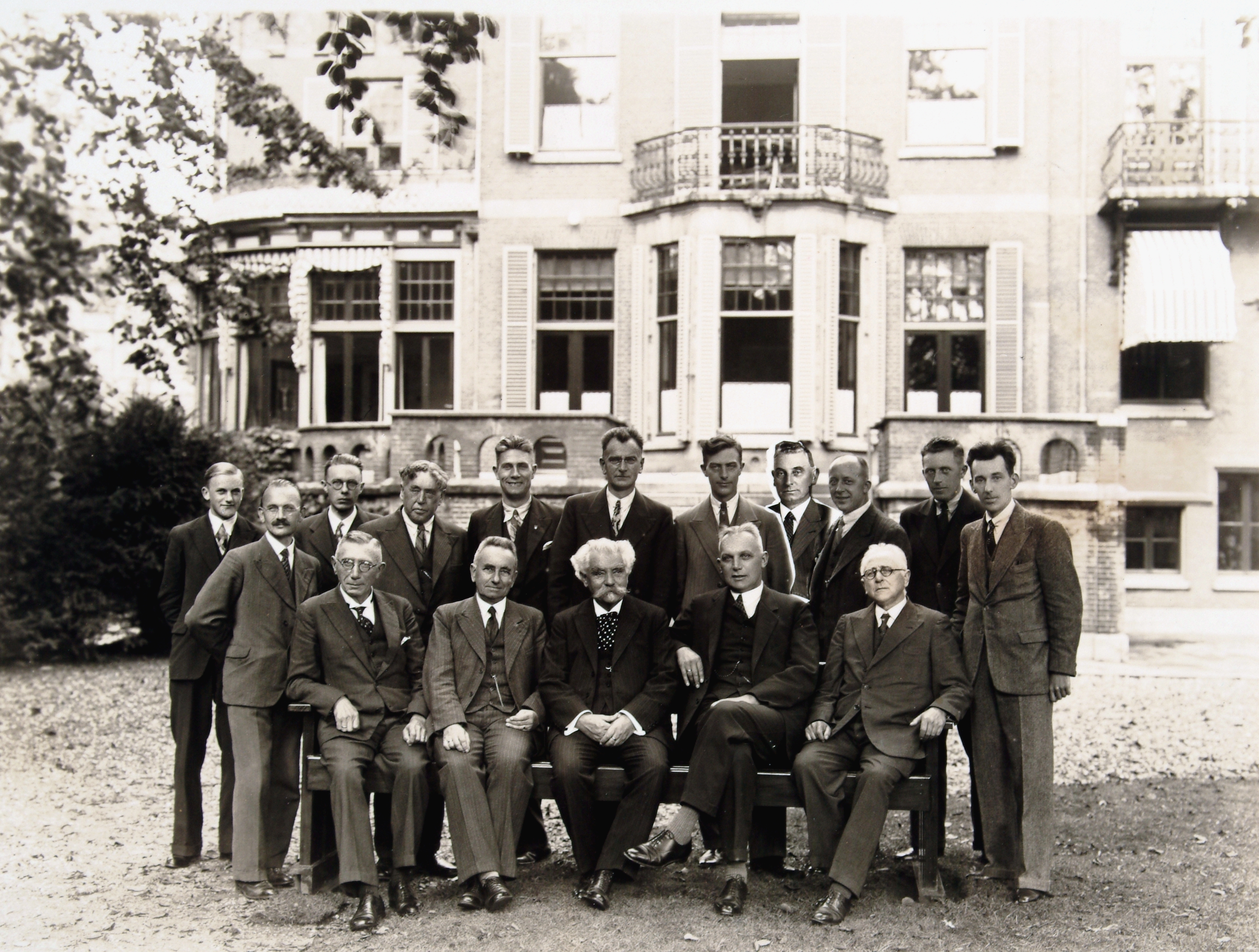 - Afscheid van wethouder Reinhardt in de tuin van gemeentewerken. Met snor: de wethouder, links van hem Hr. Brandt en rechts directeur. G.W. Versteeg, opzichter Van Ardenne en daarnaast staand Hr. Algra.