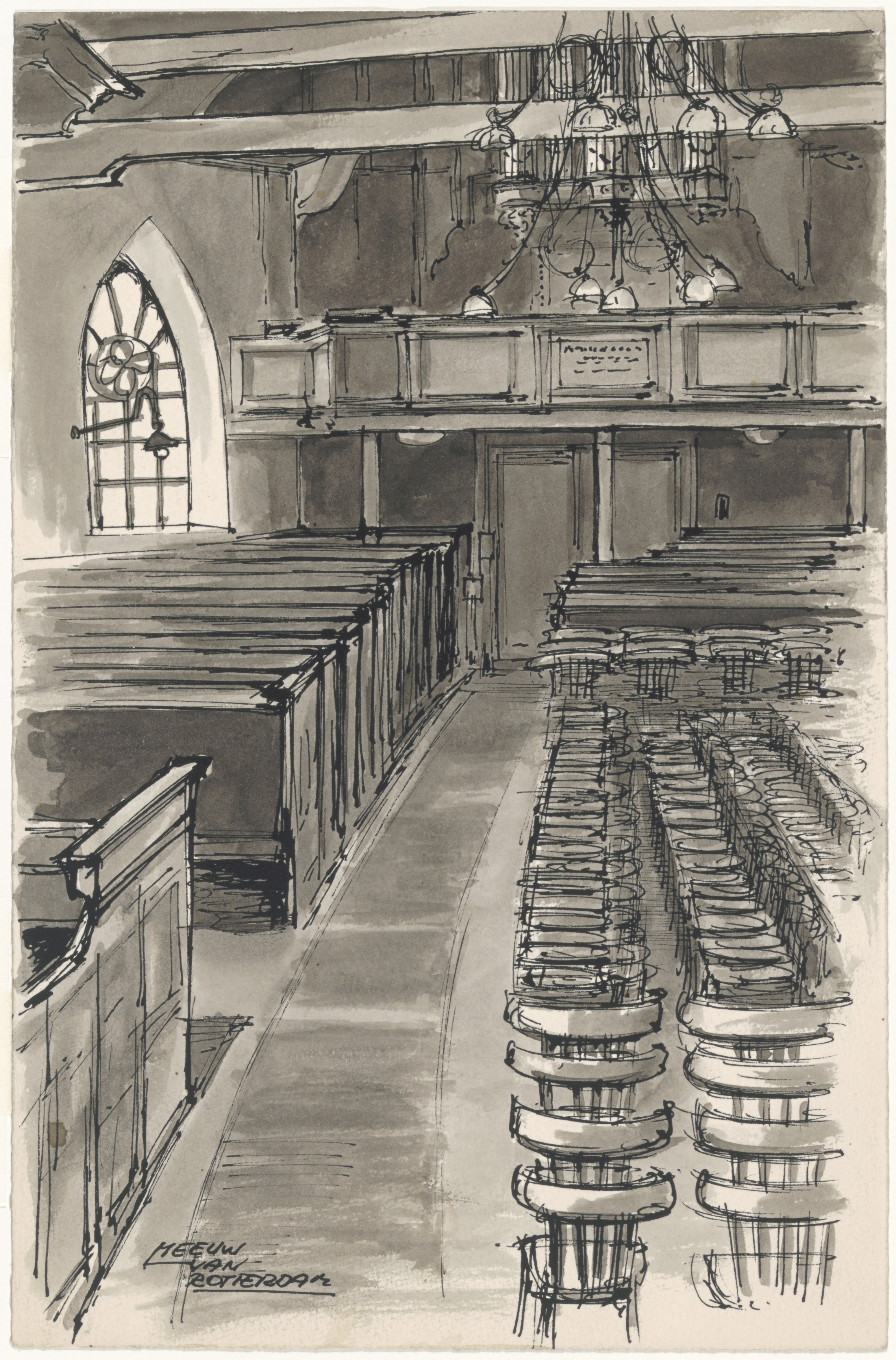Interieur van de oude, inmiddels afgebroken, Hervormde Kerk van Dubbeldam.
