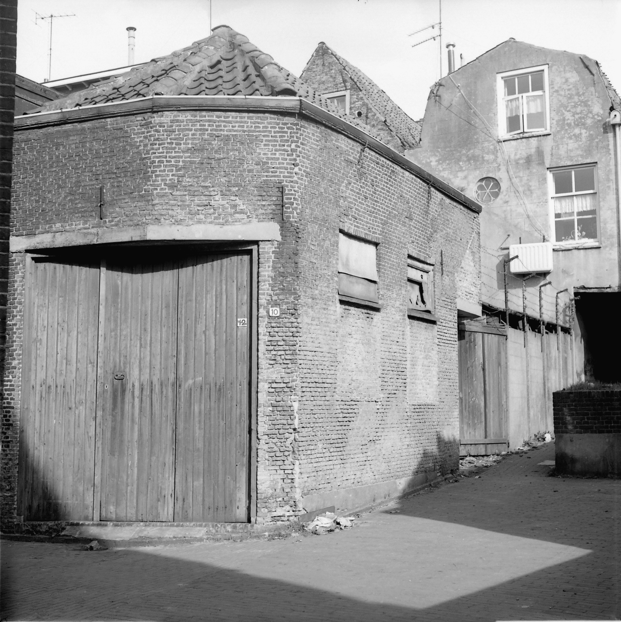 Dit is de Schotsentuin. De fotograaf stond met z'n rug naar de Pompstraat en kon, als ie dat wou, door het poortje en via een stenen trapje met twee treden op de Bleijenhoek komen.