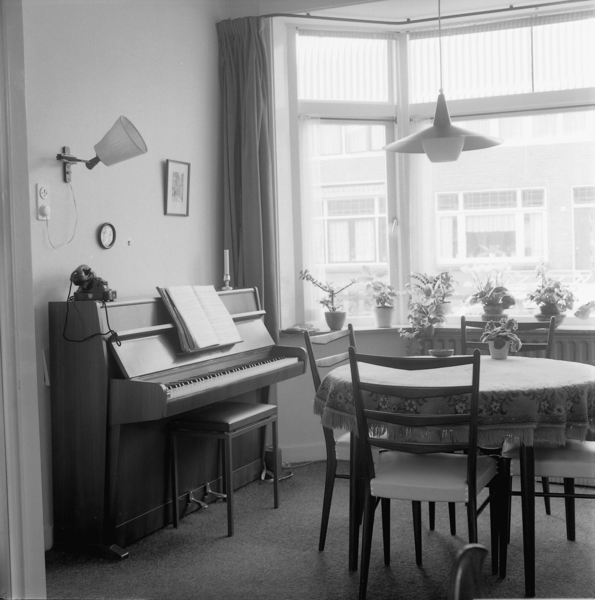 huiskamers piano's stoelen tafels telefoons