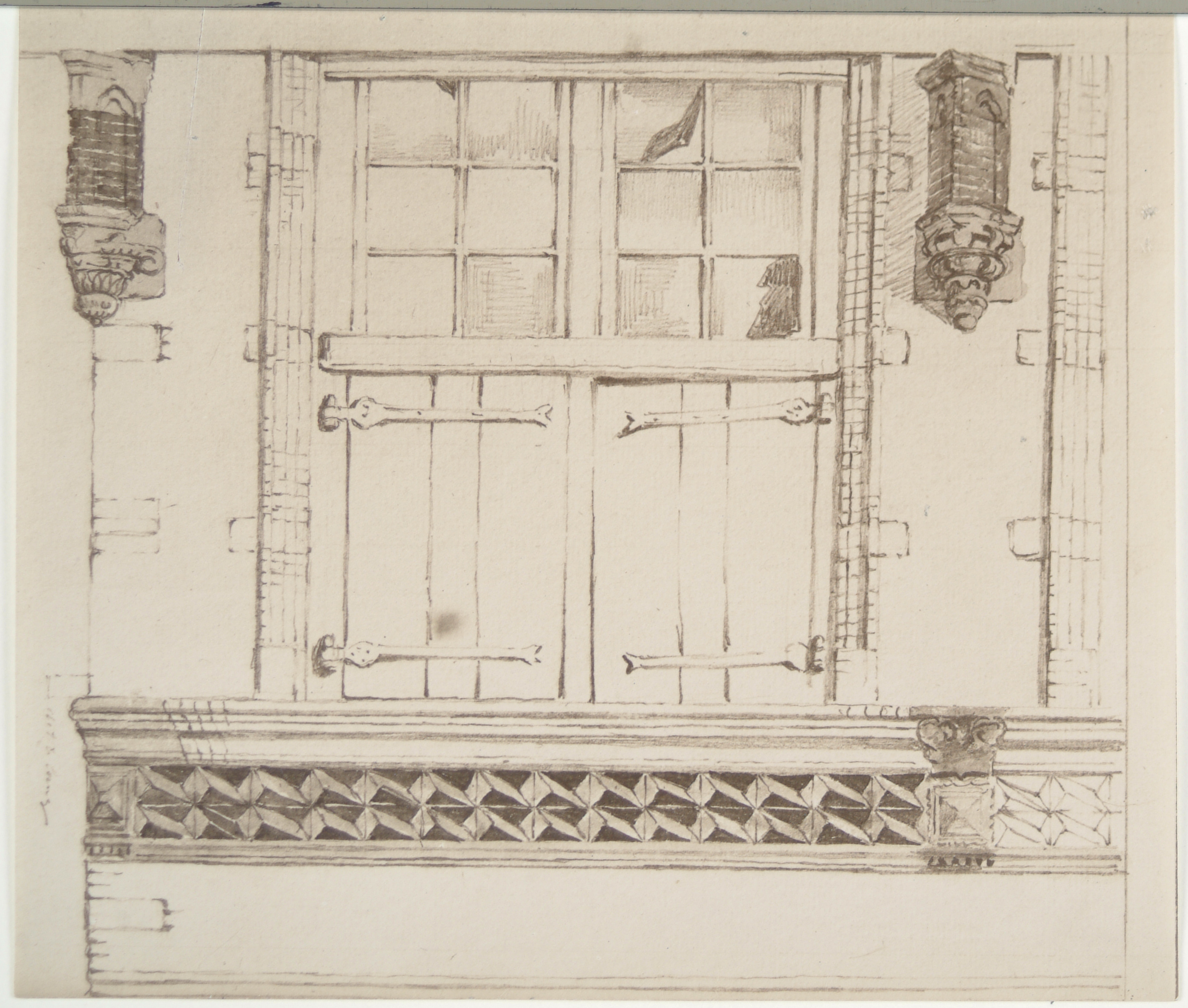 - Gevelsteen en venster van een huis te Dordrecht.