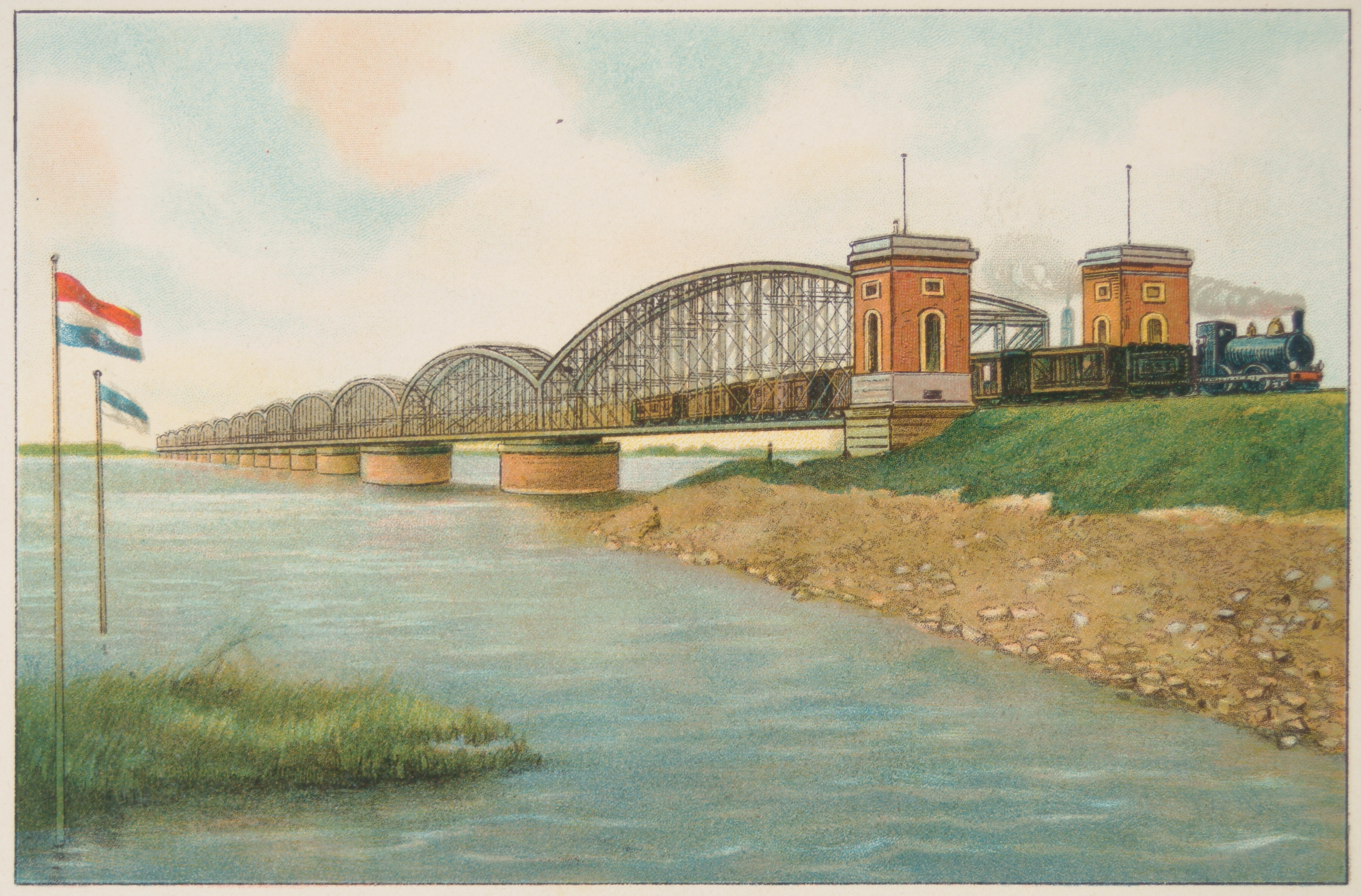 - rivieren spoorbruggen stoomtreinen vlaggen(stokken)