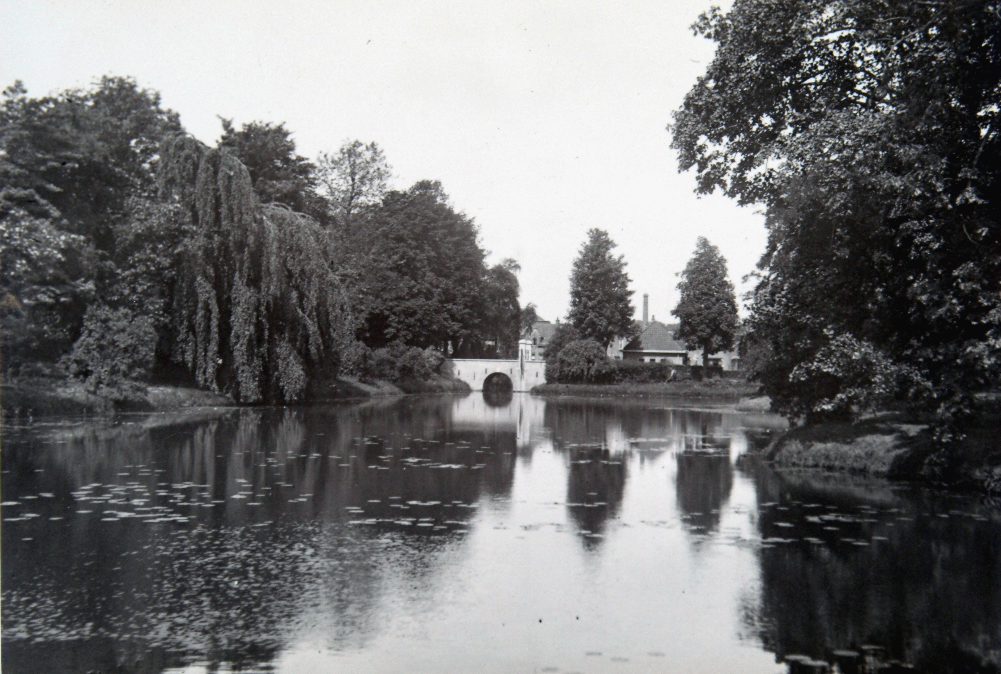 Gezicht op de vijver bij de begraafplaats aan de Dubbeldamseweg
