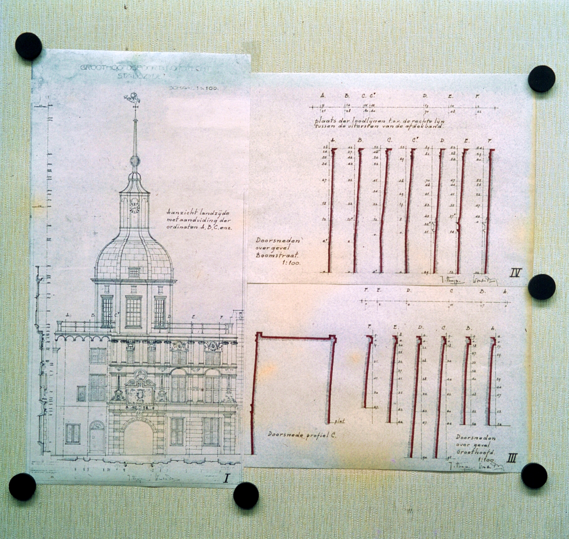 Bouwkundige tekening van de Groothoofdspoort, stadszijde.