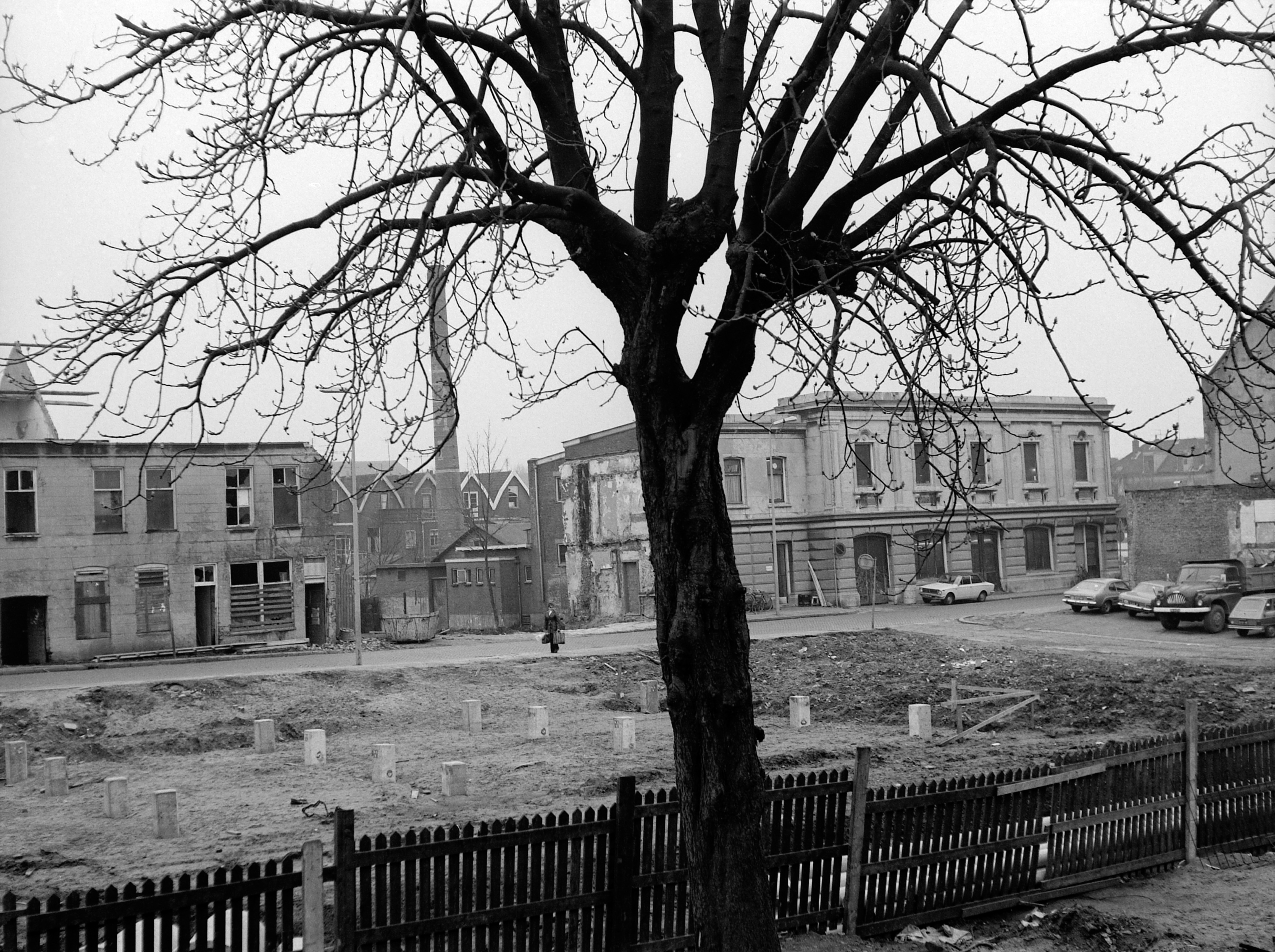 - Sloop van panden aan de Vest. Deze stonden tegenover de Mariëmbornstraat Waar de auto's geparkeerd staan is de Mariëmbornstraat