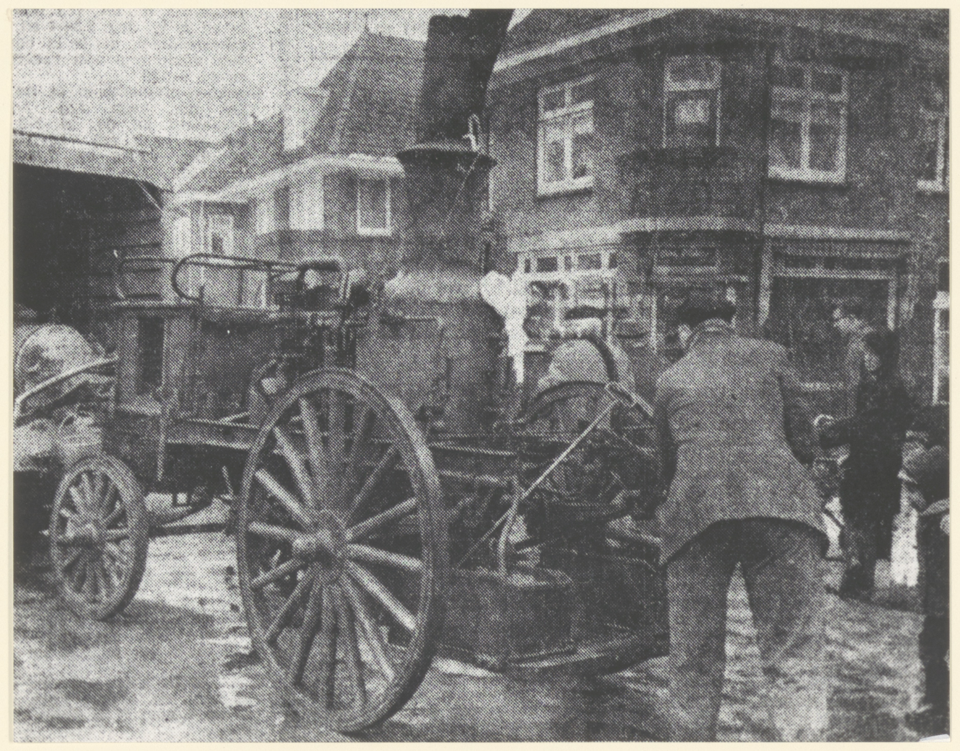 Stoomspuit op de Nieuwe Hoven in Gorinchem voor de bakkerij van Van Beers tijdens een …