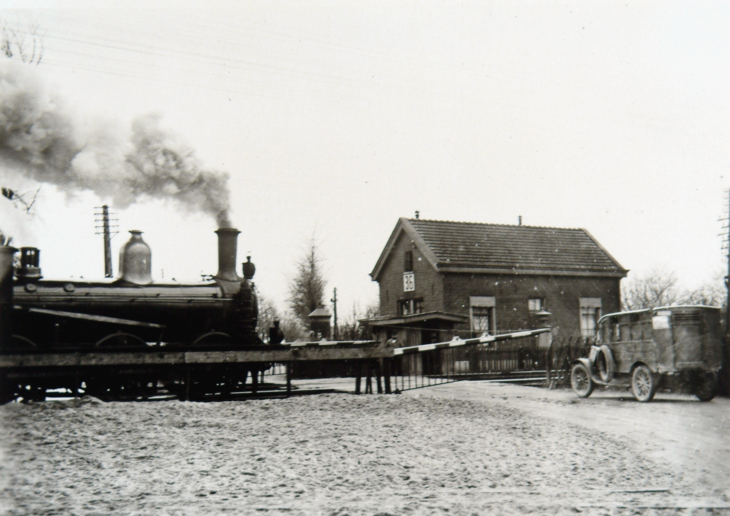 - locomotieven oldtimers overwegen / spoorwegovergangen spoorwachtershuisjes