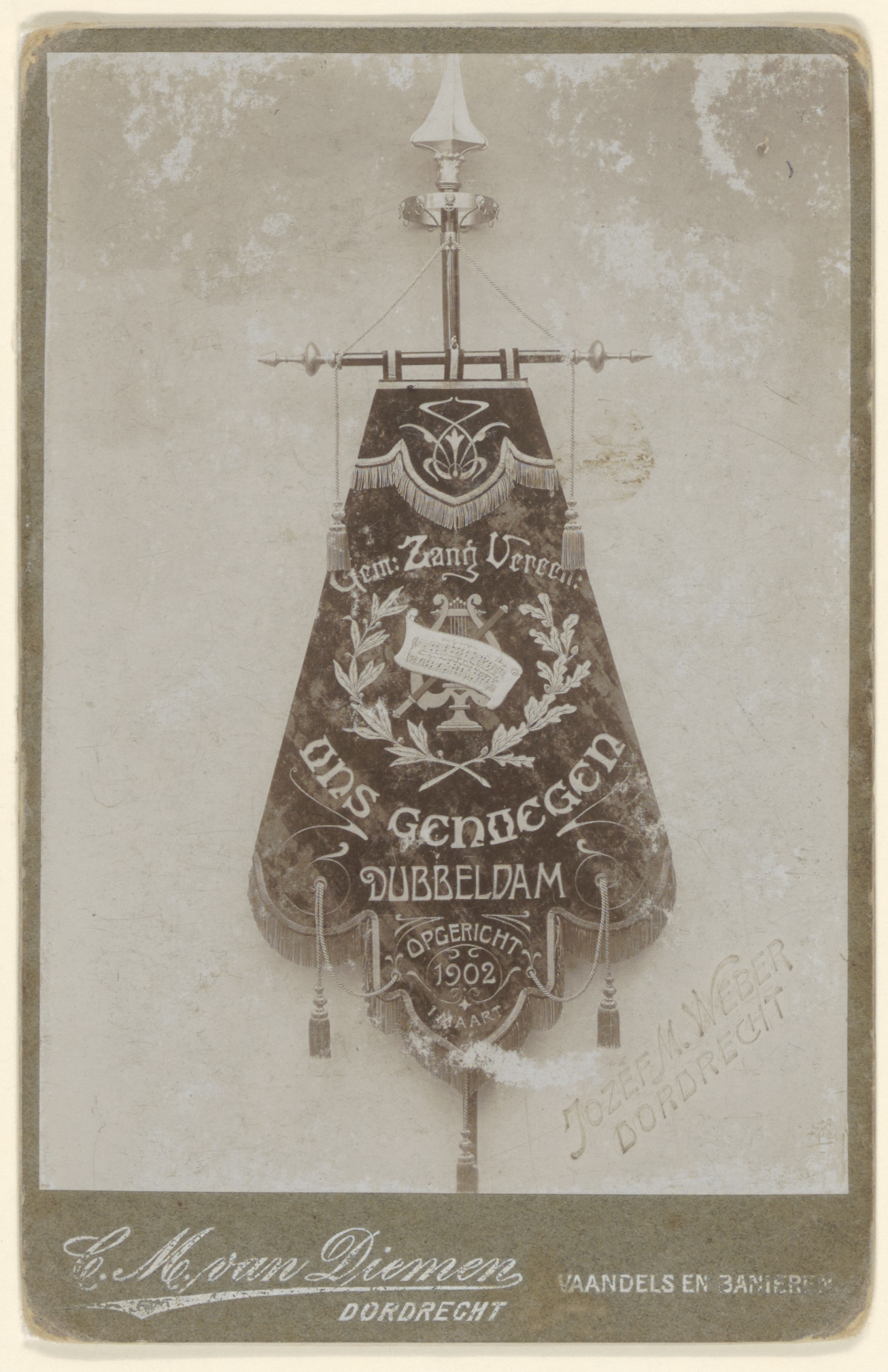 - Vaandel van de Gemengde Zangvereniging 'Ons Genoegen' te Dubbeldam, opgericht, 1902.