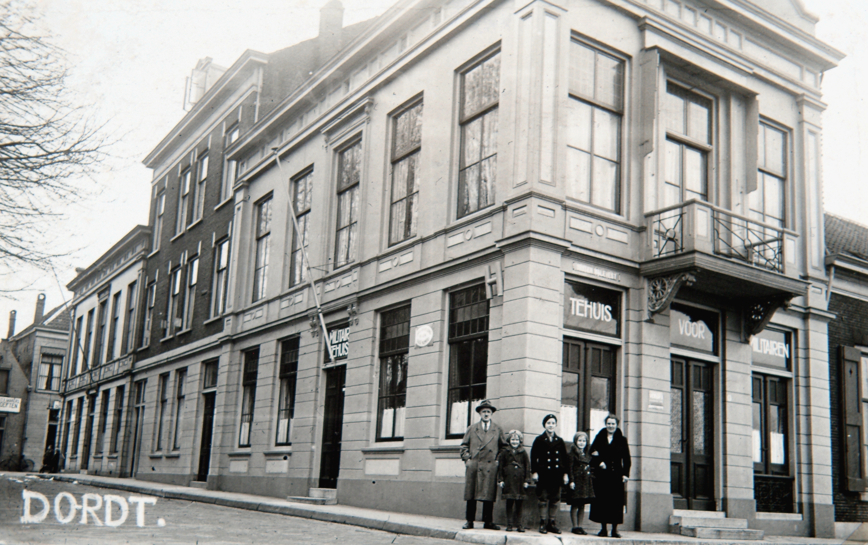 - De familie Dubbeldam voor het Protestants Militair Tehuis op de hoek van de Buiten Walevest en de Veersteiger. Het echtpaar Dubbeldam was Vader en Moeder van dit tehuis.