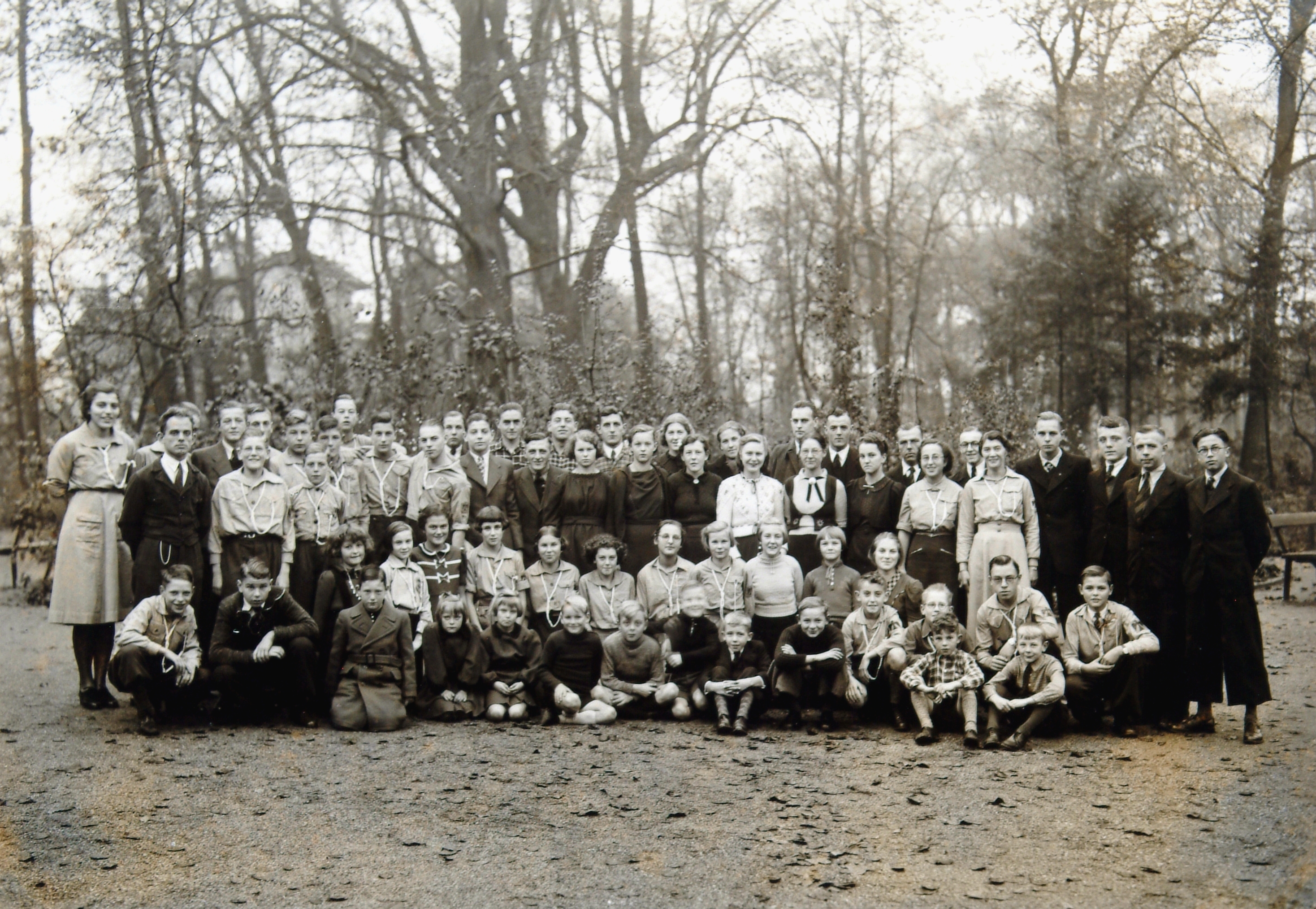 - Leden van AJC afdeling Dordrecht in park Merwestein, waarschijnlijk bij hun 20-jarig bestaan. De afdeling werd op 12 juli 1919 opgericht.