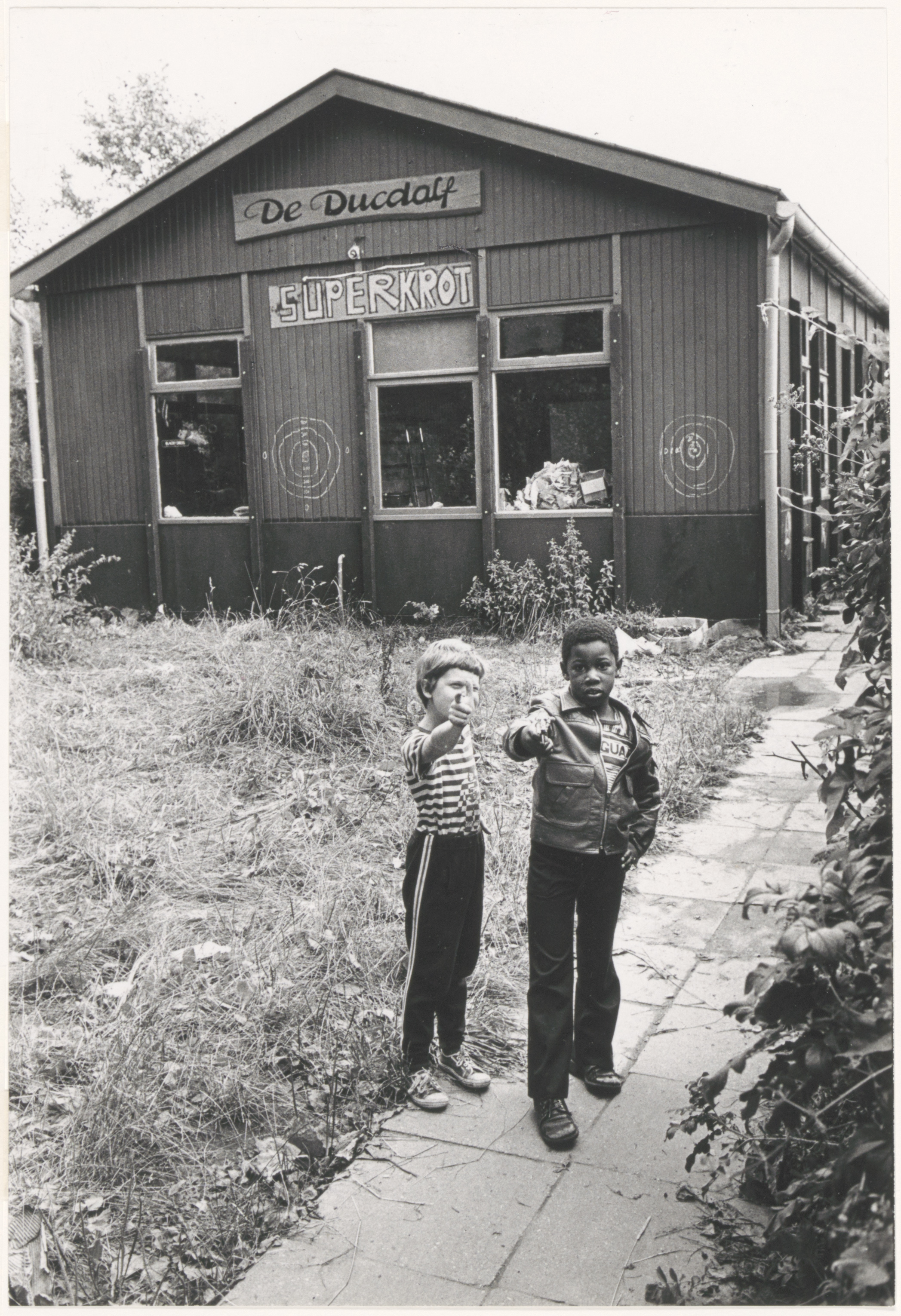 - Clubhuis 'De Ducdalf' gelegen tussen volkstuintjes aan de Nieuweweg. Op de gevel de naam, eronder staat 'superkrot'.