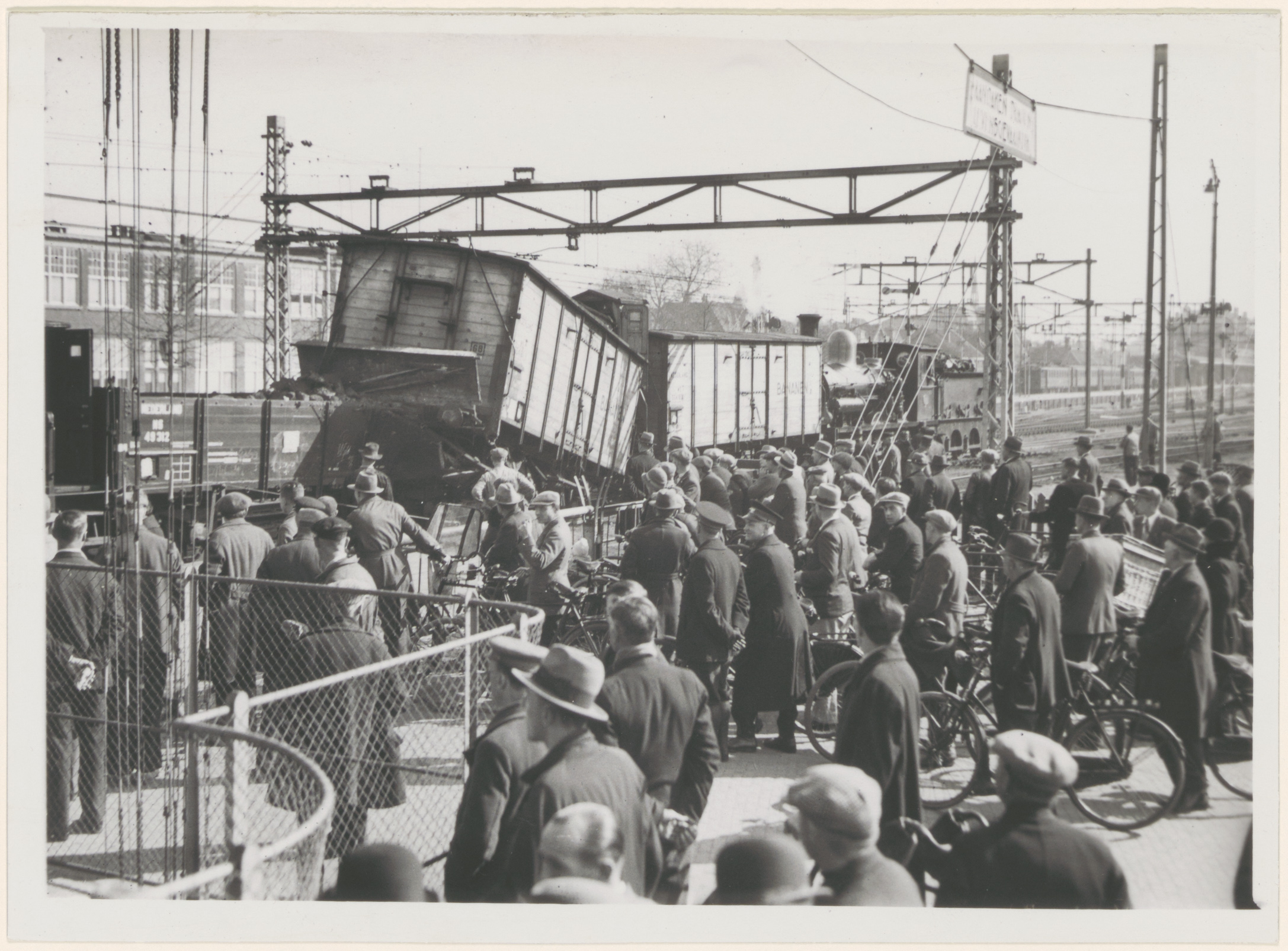 - De ravage bij de Krispijnse overweg tijdens de ontsporing op het spoorwegemplacement. Links de Ardath sigarettenfabriek aan de Burgemeester de Raadtsingel.
