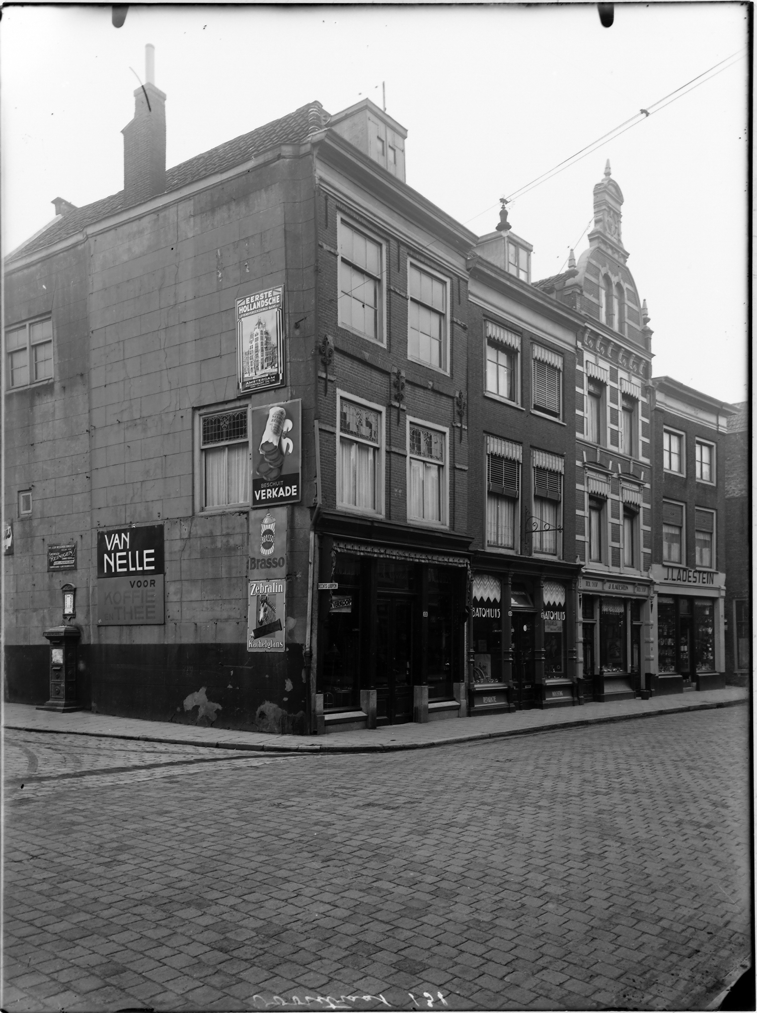 - Huizen aan westzijde van de Voorstraat met links het noordelijke hoekhuis met de Nieuwbrug