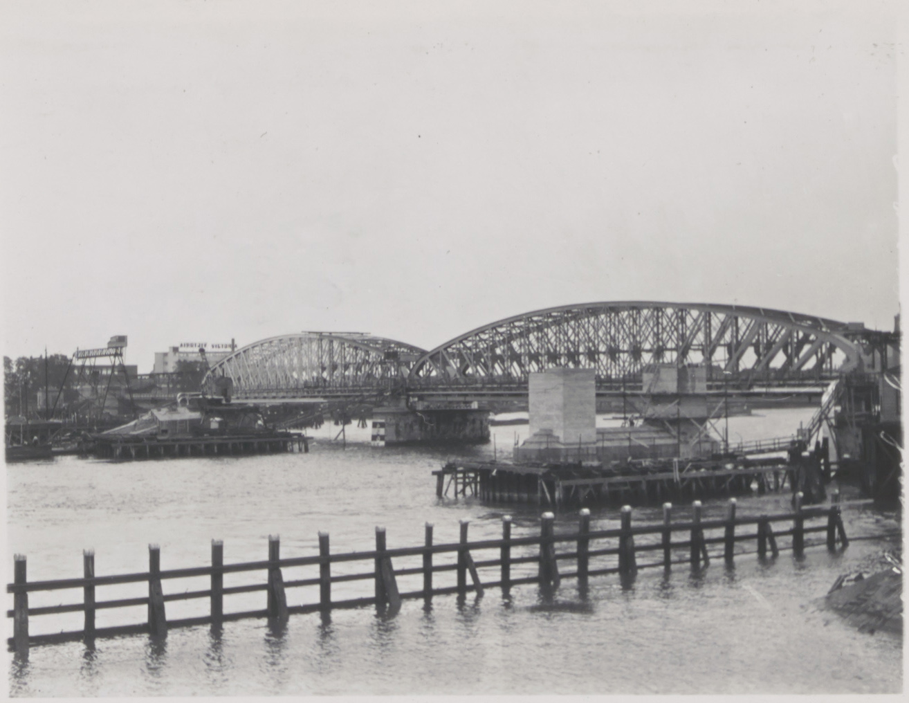 - Verkeersbrug over de Oude Maas in aanbouw naast de spoorbrug naar Zwijndrecht, gezien vanaf de Dokweg.