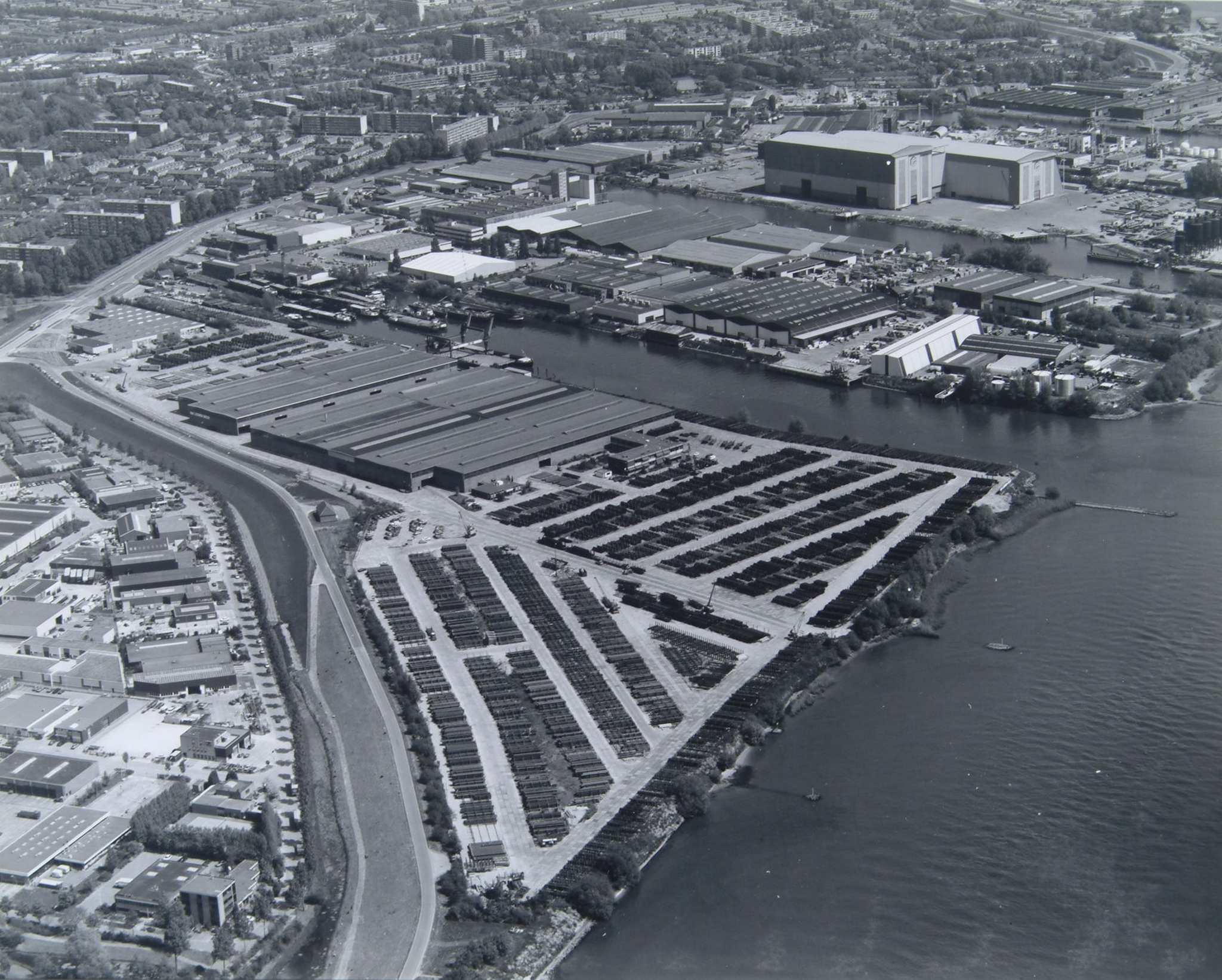 - Luchtfoto van het zuidelijk deel van Zwijndrecht met centraal het industrieterrein rond Swinhaven en Drechthaven; links de Lindtsedijk; onder de buizenopslag van Van Leeuwen buizen