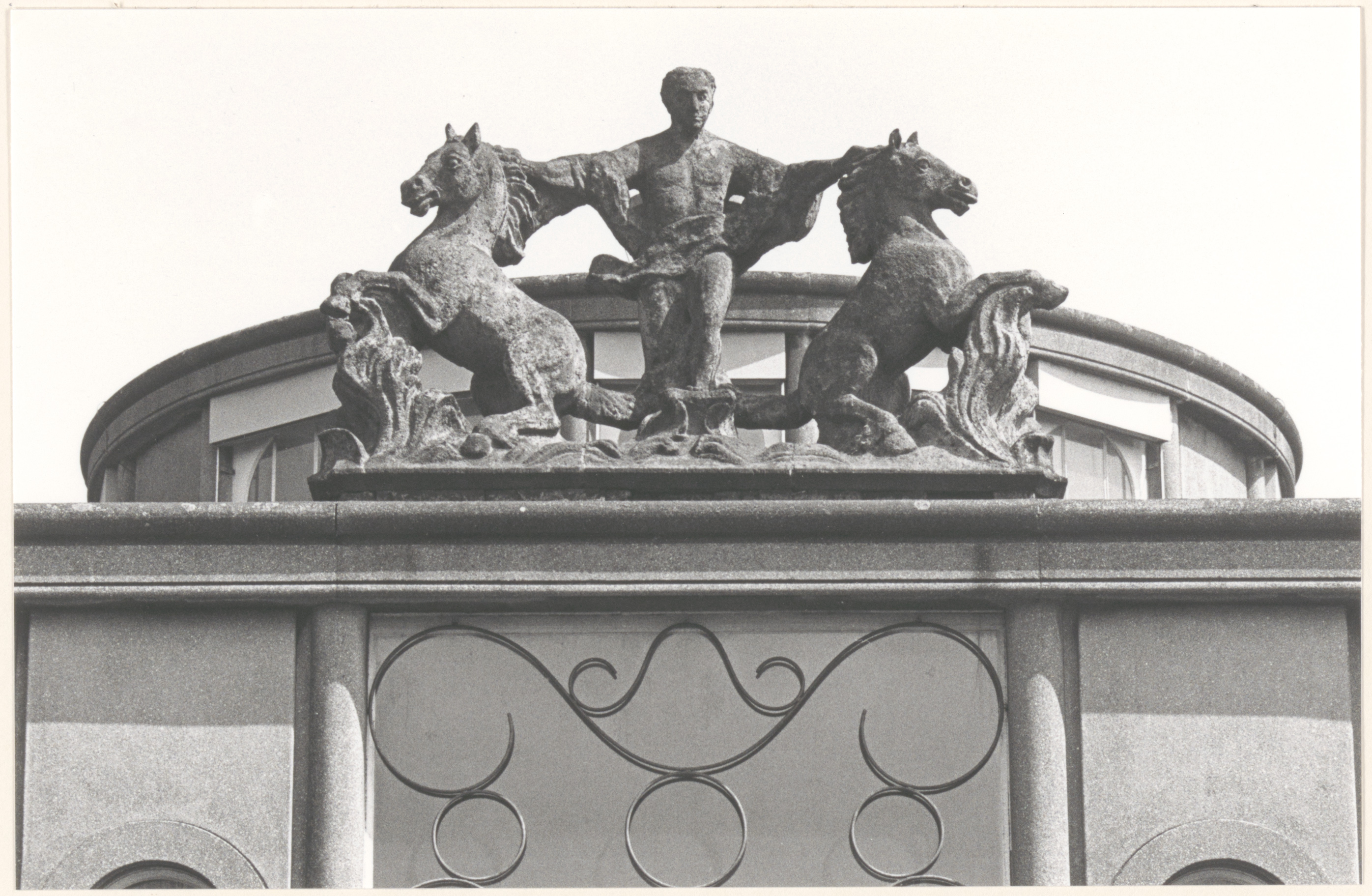 Beeldengroep van de Utrechtse beeldhouwer W. van Kuilenberg boven de hoofdingang van …