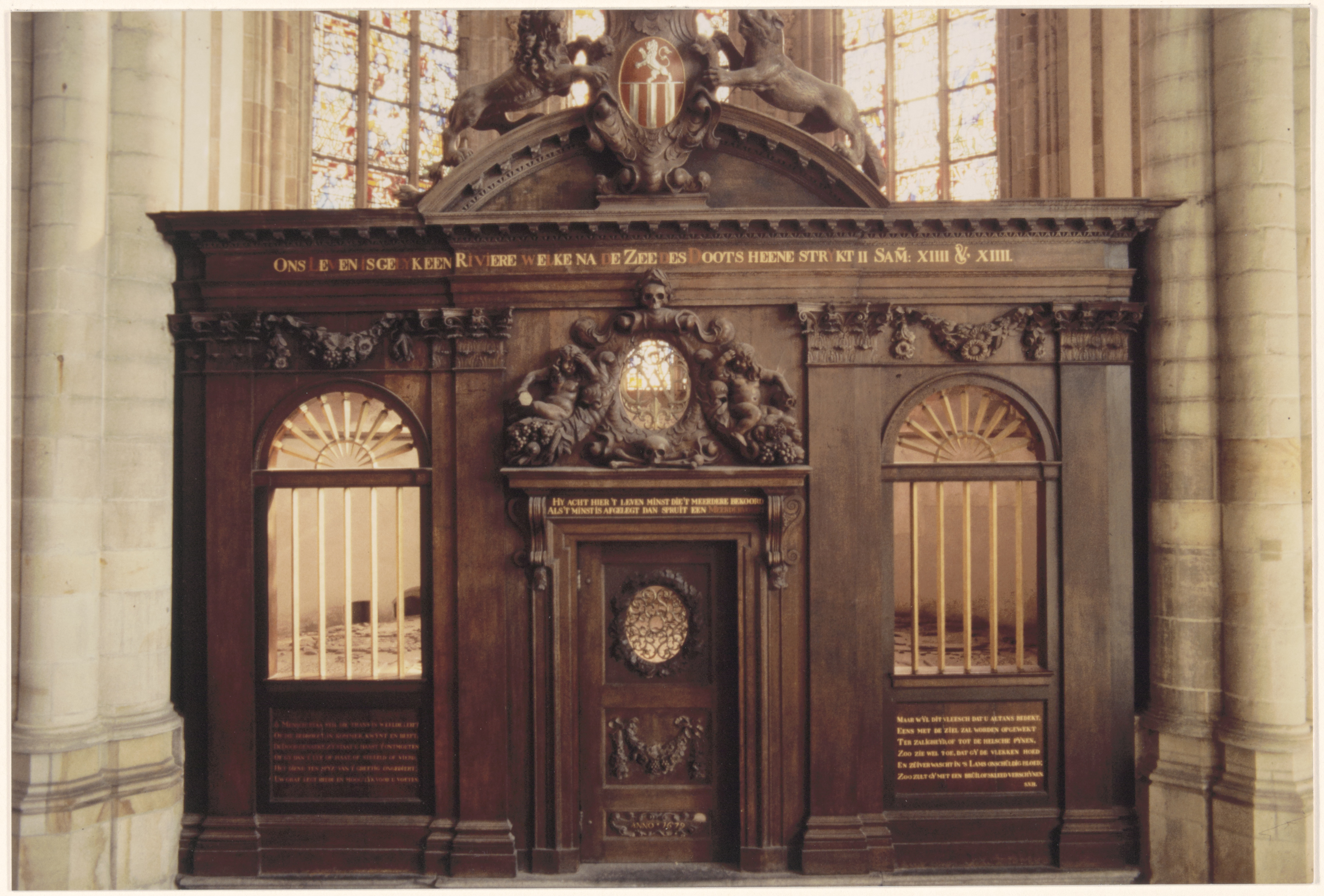 - Bewerkt houten hek van de Meerdervoortskapel in het noordoostelijke deel van de kooromgang in de Grote Kerk.