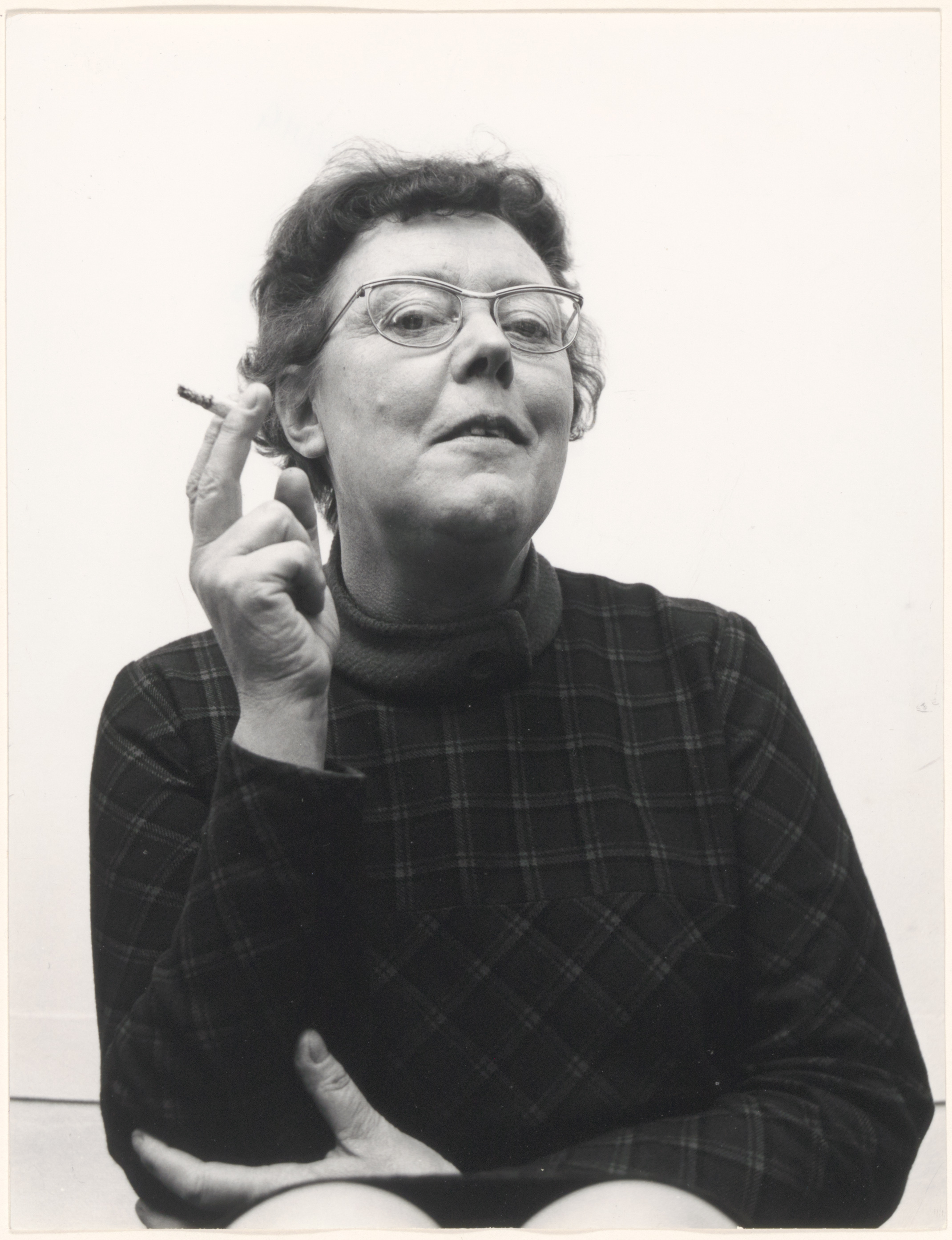 Portret van Gemma van Aken, echtgenote van ds. P.M. Mentzel, geboren te Rotterdam op 21 september 1917, overleden te Dordrecht op 12 maart 1986; zij was actief in de Rooie Vrouwenbeweging (socialistiche vrouwenbeweging).
