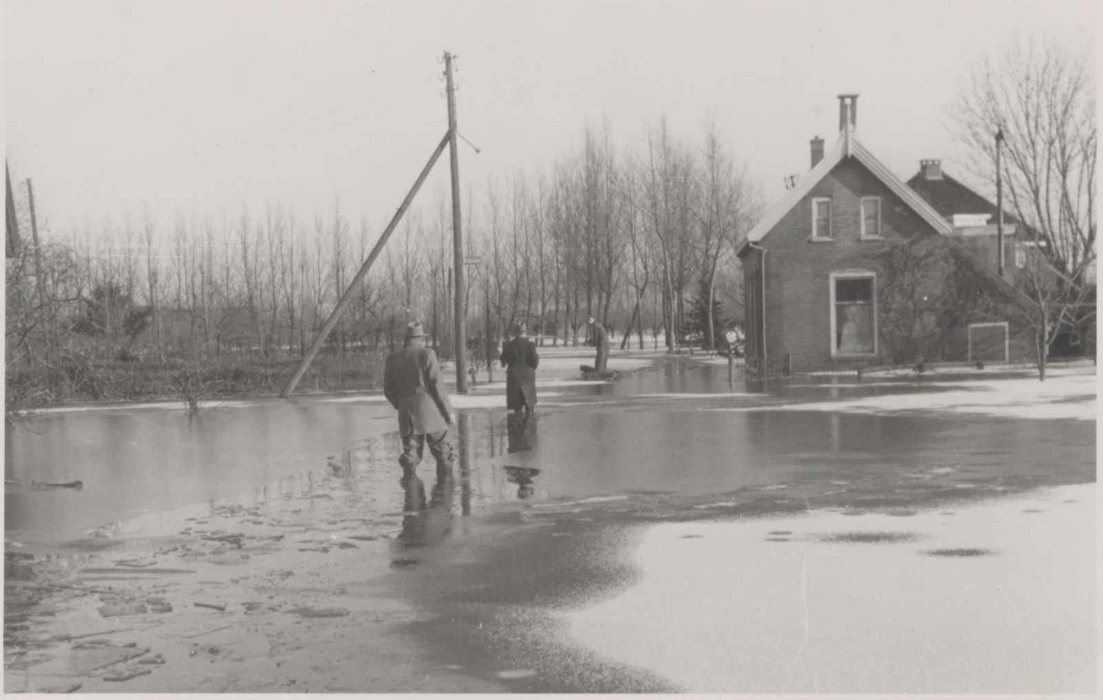 - Watersnood 1 februari 1953 te Oud-Alblas. Burgemeester Zwart gaat naar zijn woning. Hier is hij ter hoogte van de woning met winkel van A. van der Stelt. Een schouwtje komt te hulp omdat het water te hoog staat op de weg