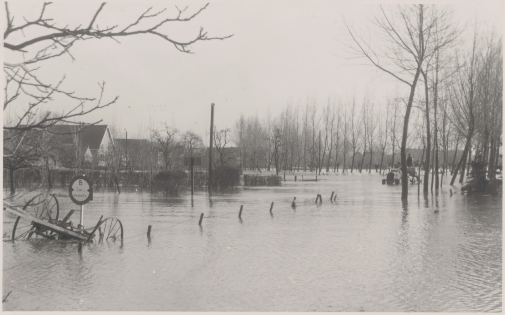 - Watersnood 1 februari 1953 te Oud-Alblas. Trekker met bandenwagen op de ondergelopen weg. Ter hoogte van de boerderij van A. Boers Oosteinde 59