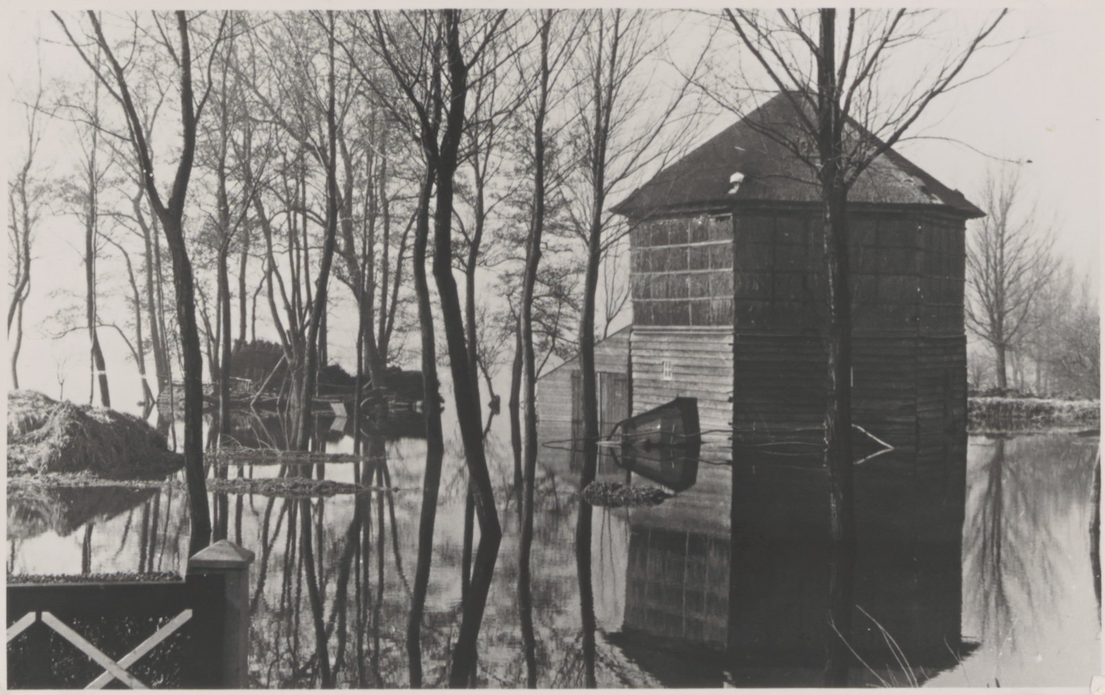 - Watersnood 1 februari 1953 te Oud-Alblas. Hooiberg in het water tegenover Oosteinde 20-21