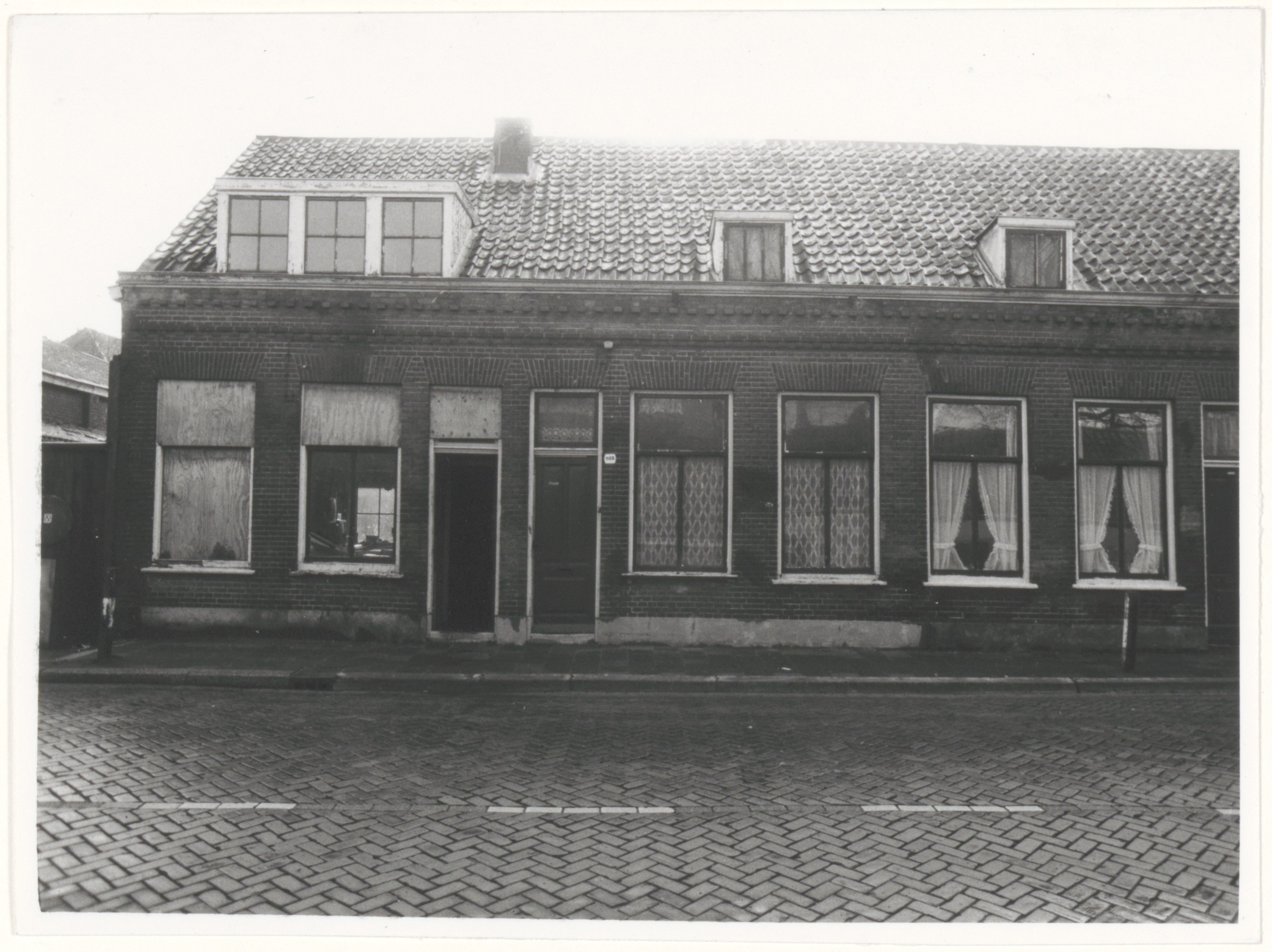 Een drietal huizen aan de oostzijde van de Vest (het middelste genummerd 102), tussen …