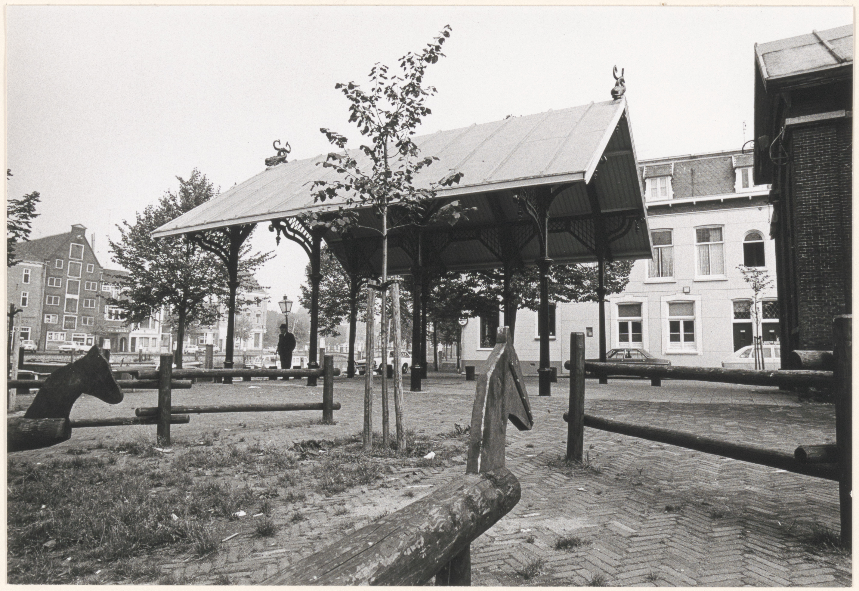 - De Vismarkt met het gietijzeren gebouwtje uit 1868, gezien in de richting van de Nieuwe Haven.